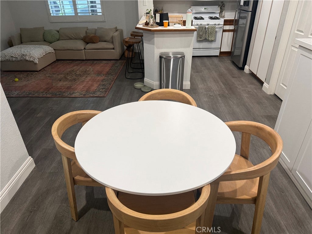 This is a nice 1 Bedroom and 1 Bath Home perfect for your first home, or second home. It is Located in the La Ventana community in beautiful Rancho Santa Margarita! Property is located as an End unit. 2 Stairways leading up to Front door Patio area. Upon entering it is open wide area of front room and dining area to the right side. Flooring is Vinyl with nice base boards and recessed lighting. The kitchen has stainless steel appliances with a dishwasher and microwave oven. There is a garbage disposal and lots of counter space. There is also plenty of natural lighting for entertainment. The dining area is separate from living room and has extra storage, Master bedroom has large window for extra lighting. There is a mirrored closet door and room has smoke detector. Master Bathroom has a walk-in closet for extra storage and in addition there is a room with stackable washer and dryer. There is also shower and tub combo. For parking there is an attached 1 car garage that is directly located directly below your unit. The garage also has additional storage space. For a second car you can park in any of the open spaces with H.O.A. registration. Open spaces are also for your Guests. La Ventana complex offers a private pool and spa. In the Rancho Santa Margarita area you will enjoy the Lago lake, amphitheaters, parks, tennis courts, pickle ball courts, Basketball courts, Hicking trails and not to mention you will have access to all Samlarc parks and recreations.
