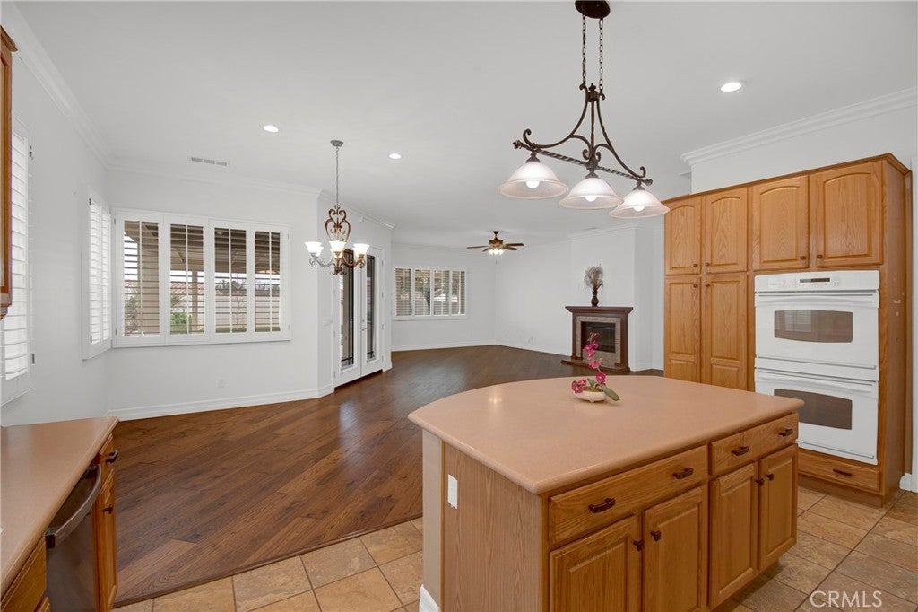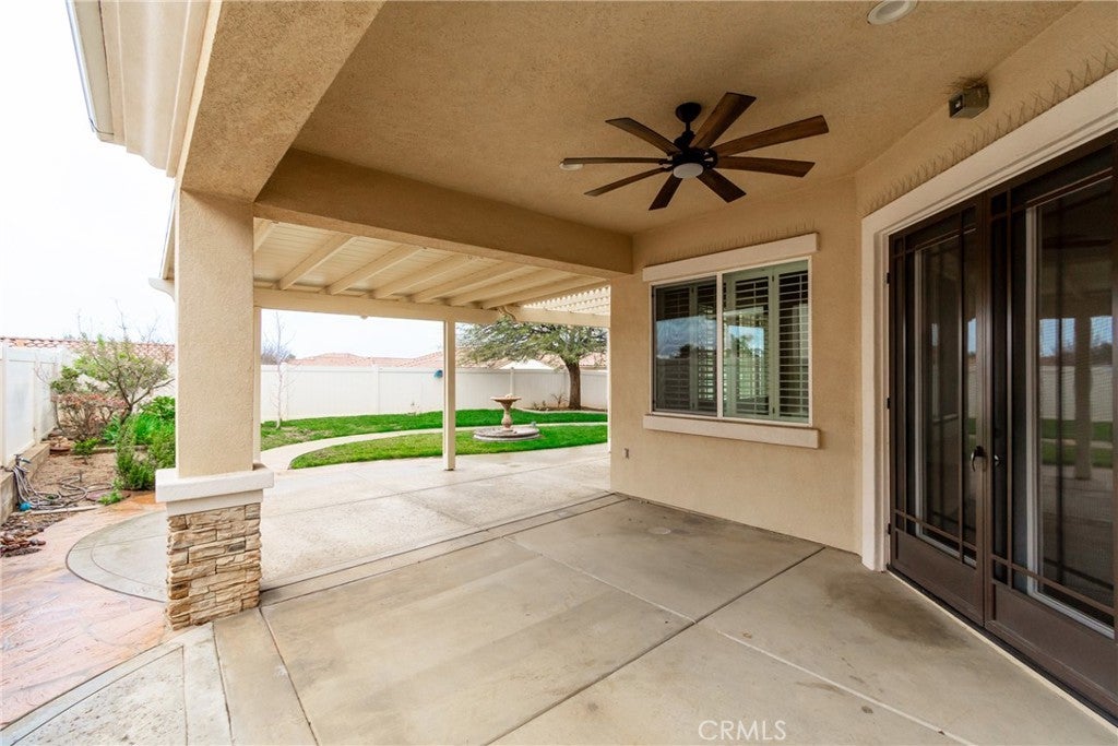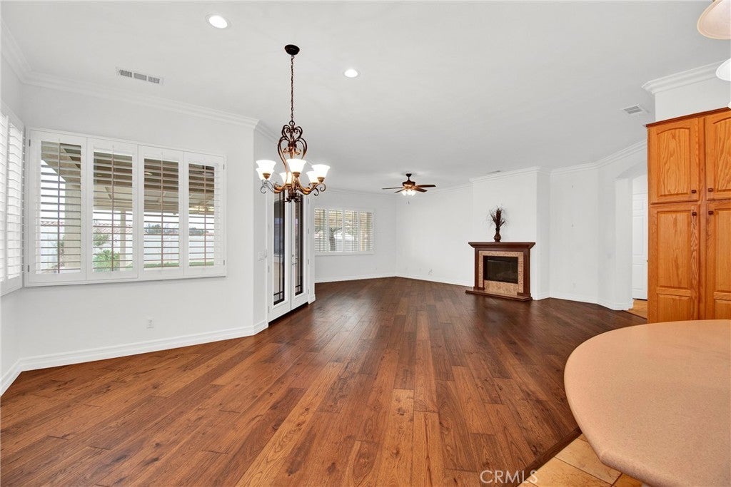 Lots of TASTEFUL UPGRADES with this Spacious 'EMERALD' Model (2 BR 3 BA + Den/Office - 2,127 Sq Ft), Located in the Luxury, 55+ Active, Adult Community of Solera at Oak Valley Greens, on a Quiet Cul-D-Sac Street with a Desirable Corner Lot. It is Beautifully Landscaped Property which brings plenty of Curb Appeal. Features and Upgrades include: A Great Room Concept with TWO Primary Bedrooms (En Suite with Bathrooms & Walk-in Closets thoughtfully located on opposite sides of the Home); Crown Molding; Attractive Hardwood & Tile Flooring throughout; Wonderful Natural Light Flow; a Cozy Fireplace and Large Dining area. We have an Entertainers Kitchen with a large Island/Breakfast Bar with Storage and Lots of Cabinetry & Counter Space. Entertain Your Guests in a Serene & Peaceful Private Back Yard area with a Covered Patio. Solera offers a Pool, Spa, Clubhouse, Indoor Gym, indoor Track, Tennis Courts, Billiards, Meeting & Banquet Rooms, Bocce BallL Library, Classes, Clubs, Group Trips and 24-hour Security. Basic Spectrum Cable and Internet are included with your HOA. Solera is close to Palm Springs, Redlands, Cabazon Outlet Malls, Morongo Casino, Great Golf courses very Close By.