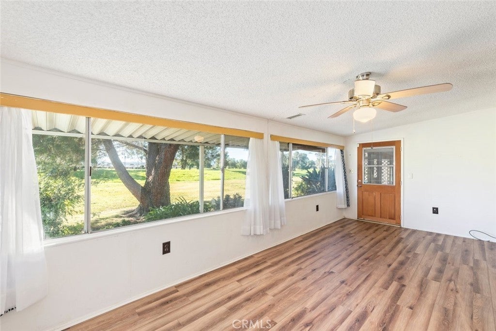Inviting 55+ end-unit home located in the heart of Menifee within The Sun City Civic Association. Enjoy an active senior lifestyle with the many amenities SCCA offers, including an indoor tournament shuffleboard court, tournament horseshoe pits, fitness center, two swimming pools, spa, lawn bowling, and a wide variety of clubs and social activities. HOA benefits include sewer, water, trash service, and well-maintained landscaping. This two-bedroom, two-bathroom home sits along the Cherry Hills Golf Course, offering beautiful natural views. The enclosed patio offers a blend of indoor comfort and outdoor ambiance. The space provides year-round usability while maintaining a bright, open feel. Large windows allow for natural lighting and connection to the backyard, making it ideal for relaxing, entertaining, or enjoying morning coffee in a private setting. The enclosed design adds versatility—perfect as a sunroom, secondary sitting area, or hobby space. The family room provides ample space for gatherings with friends and family. The home features direct access to a one-car garage, driveway parking, and a separate laundry room with plenty of storage. Conveniently located near a variety of restaurants and shopping options. Begin your next chapter here and make this home into your own.