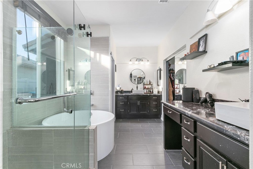 Fantastic 4 bedroom, 2 bath single story home on a large lot in the original Sundance community with low HOA fees. Enter into the great room, with brand new custom kitchen, granite countertops, and plenty of storage! Slider door right off kitchen is brand new and brings in so much natural light! Sellers have also installed new recessed can lighting in the family room so you can be de-lighted all day! Primary bedroom is absolutely spacious, with room for you to fit any type of furniture you need! Walk through the barn door to the primary bathroom which features separate round tub and glass enclosed shower, with two separate sinks and spaces to get raring for your day. Tiled bathroom opens to the expansive walk in closet with mirrored closet doors! Down the other wing of the home you find the other 3 bedrooms, one with double doors currently being used as an office. This home has new AC and ducting with a hospital rated air purifier, new water heater, leased solar panels where you only pay for used production, TWO tesla batteries! All of this with low HOA and special assessment taxes! Gotta see it!