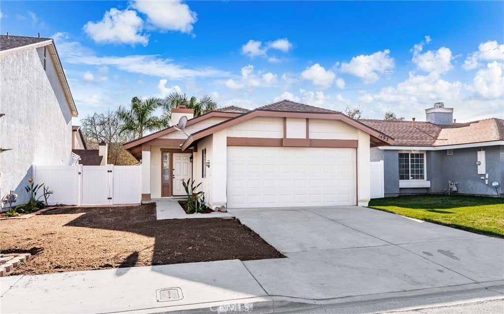 A truly turnkey home, 1495 Lake Placid Drive offers modern comfort just minutes from Cal State San Bernardino. This refreshed single-story home features 3 bedrooms, 2 bathrooms, and beautifully updated living spaces. Step inside to a bright interior with brand-new white oak kitchen cabinets, quartz countertops, fresh paint throughout, new doors, new carpet, and new laminate flooring in the living room. Both bathrooms have been tastefully upgraded, and the exterior has been freshly painted for a like-new feel inside and out. The community features a sparkling pool, barbecue and picnic areas, tennis and basketball courts, and common RV parking, offering an exceptional blend of comfort, convenience, and amenities. The front yard is in the process of being seeded for grass.