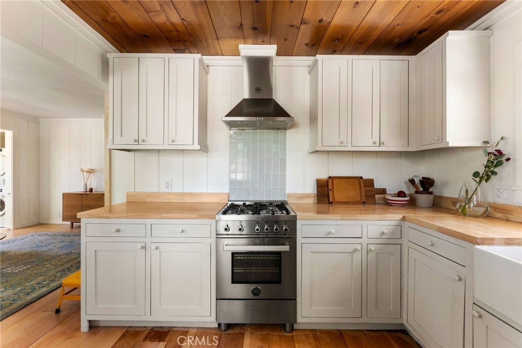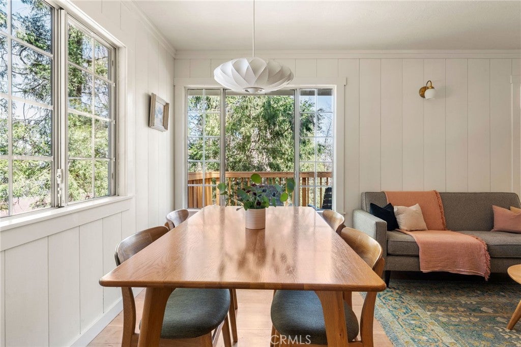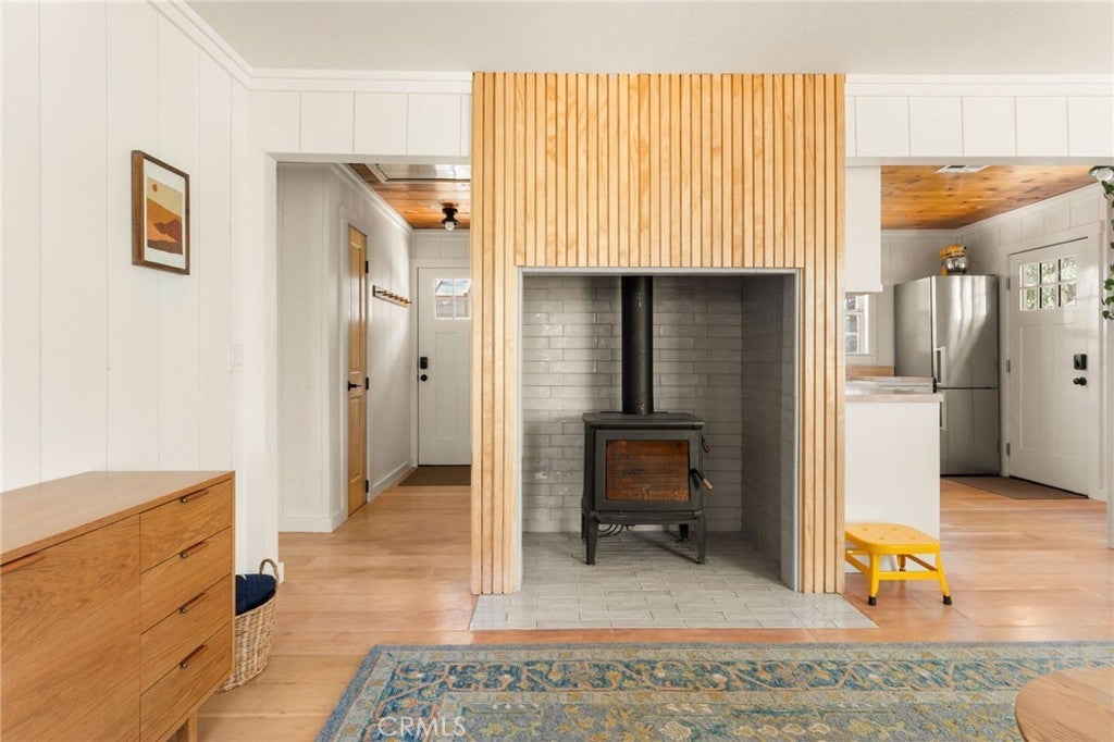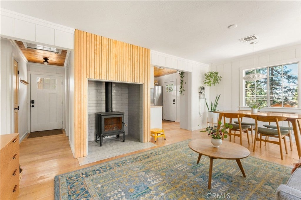 This home has been thoughtfully updated with an inviting Scandinavian aesthetic and organic mountain touches. Located at the end of a cul-de-sac, this property offers a quiet, tranquil respite from the hustle and bustle of daily life. Beautiful masonry along an easily accessible driveway offers ample parking for family and guests. Enter on the upper level to find a light & bright, fully updated kitchen with custom cabinetry and butcher block countertops that opens to the dining area and living room, with large windows that let in the light. A beautiful Hearthstone wood burning stove serves as a focal point in the living room. Down the hallway are two bedrooms, one of which is the primary suite with en-suite bathroom. Across the hallway is the 2nd bathroom. Also on this level is a built-in desk area, stackable laundry closet and access to the newly constructed front deck. Downstairs is the 3rd bedroom and direct entry into the 1 car garage. The backyard features a spacious back deck and large gradual hillside with endless potential. The property has undergone a full renovation in recent years - upgrades include: new electrical, new wall insulation using rockwool, custom tongue and groove wood paneling, interior walls have been soundproofed with rockwool, all new kitchen & bathrooms, new water heater, new front & back redwood decks and more! This charming cabin will steal your heart!