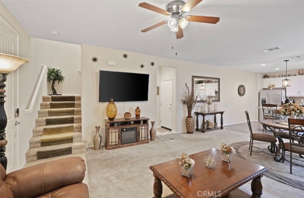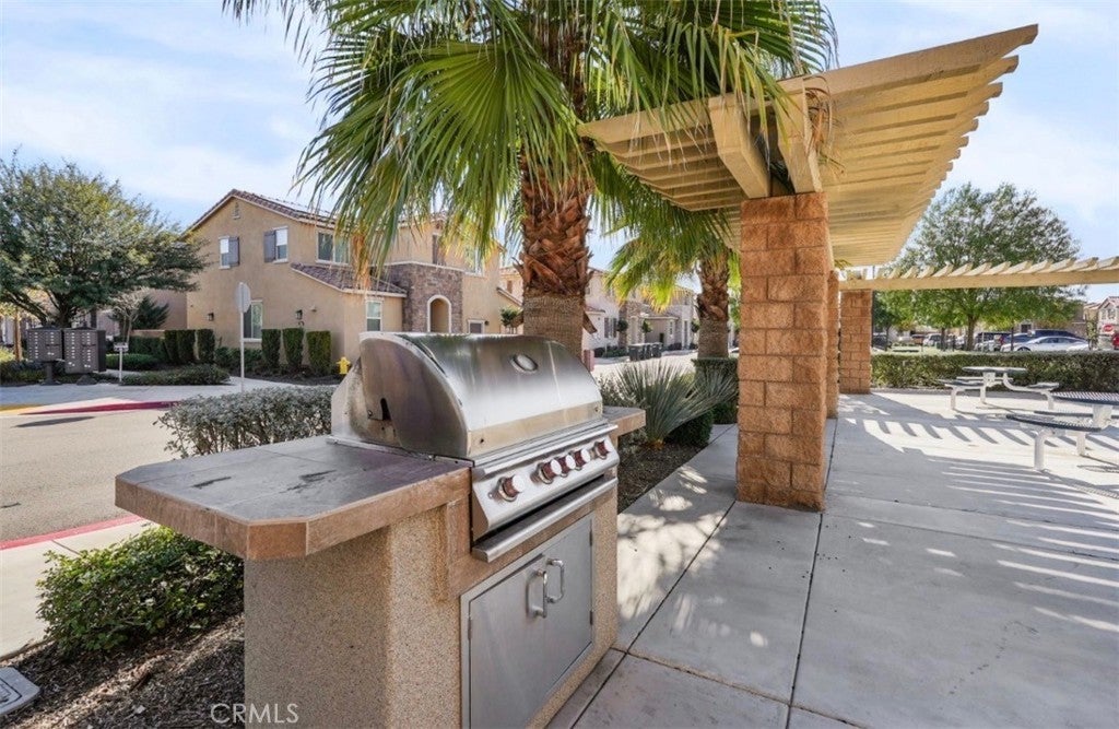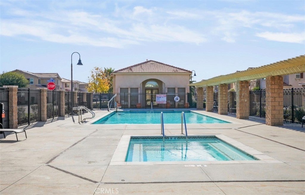 Welcome to this beautifully maintained three-bedroom, two-and-a-half bath home, built in 2022, and located in a desirable gated community in Perris. The open-concept kitchen features white cabinetry, quartz countertops, and stainless-steel appliances, seamlessly flowing into the main living area—perfect for everyday living and entertaining. The spacious primary suite offers a relaxing retreat with a walk-in shower and dual sinks. Additional highlights include an indoor laundry room, attached garage, and owned/leased solar for energy efficiency. Residents enjoy resort-style community amenities, including a pool and spa, park, clubhouse, and outdoor cooking and barbecue areas. This newer home offers comfort, convenience, and a wonderful community lifestyle—don’t miss this opportunity!