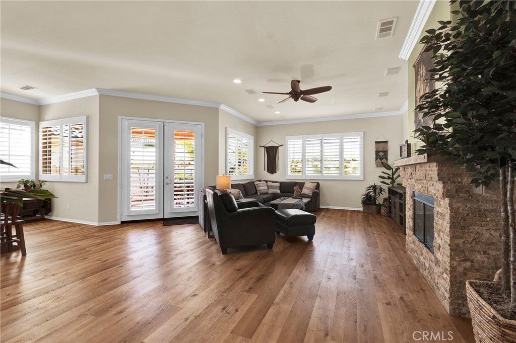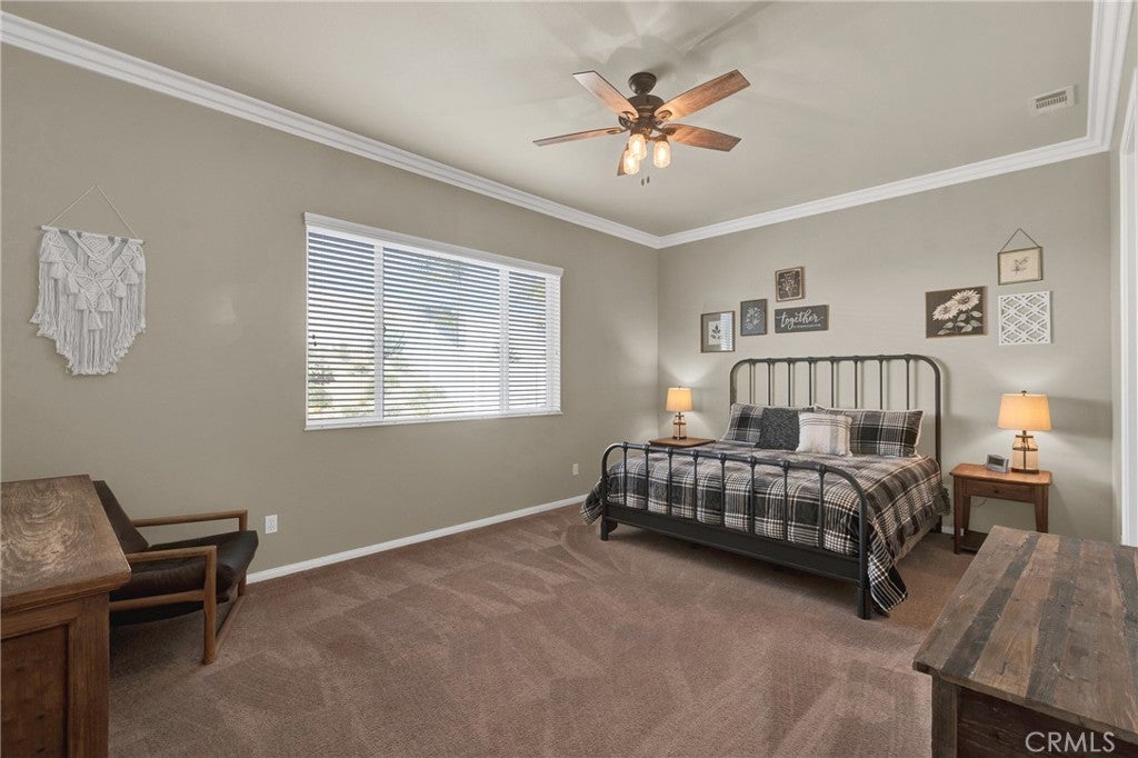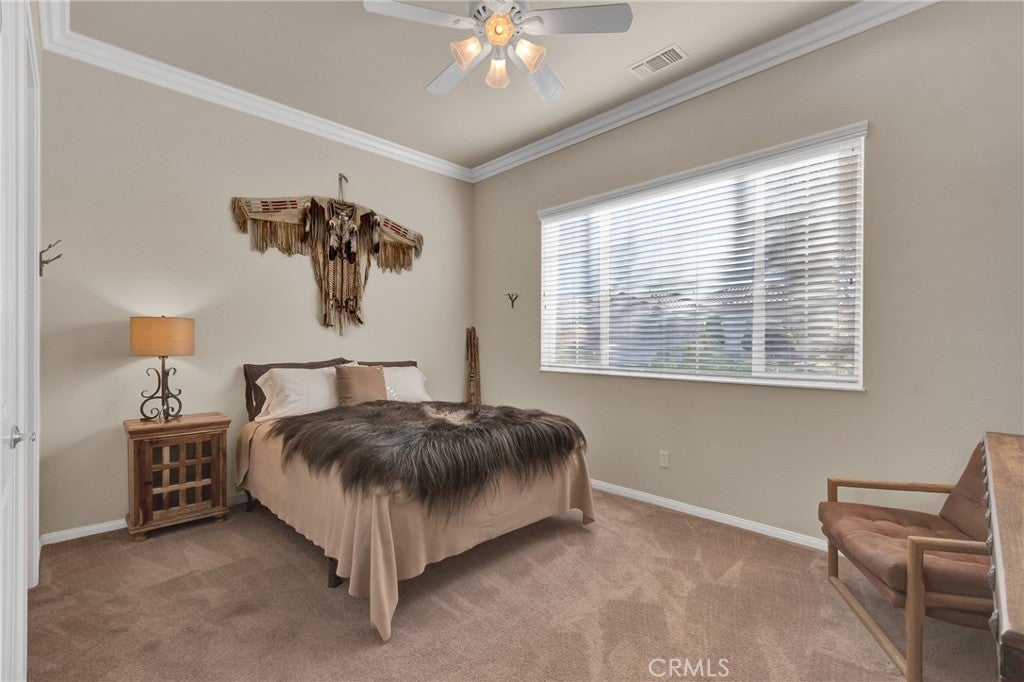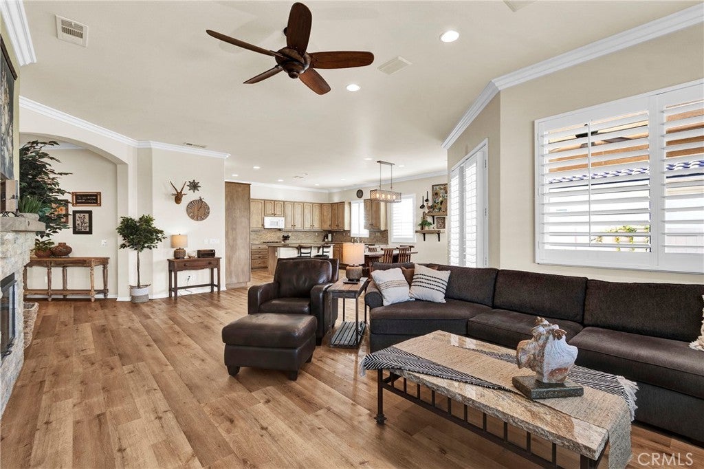 IMMACULATE 'EMERALD' Model (One Story 2,127 Sq ft - 2 Primary BRs - 3 BA + Den/Office) located in the Luxury 55+ Active Adult Community of Solera at Oak Valley Greens. Features and Upgrades include: Beautiful & Neutral LVT Flooring; Crown Molding; Plantation Shutters; Great Room Concept with Open ENTERTAINER'S kitchen featuring: Super Attractive RE-DONE CABINETRY, Large Kitchen Island w/Storage, Custom Backsplash, LOTS of Counters & Cabinets and Double Ovens; A Cozy Fireplace in Living Room; Custom Fans & Lights throughout Home; Separate Laundry Room with Storage, Pantry & Utility Sink; Very Private Yard with Covered Sitting, Garden & Grassy Areas. Price includes Refrigerator, Washer & Dryer - Attractive Furniture is Available (Not included). Solera at Oak Valley Greens offers a Great Clubhouse; Many Social Clubs and Activities to meet New Friends; Indoor Jogging track, Fitness center, Tennis courts, Pool/spa, Library; Bocce Ball and Billiards. The Solera 55+ Community has a Picturesque Mountain Backdrop, and is Freeway Close (I-10) - A Short distance to fabulous Shopping (Cabazon or Palm Springs); Casinos; Golf at Oak Valley Greens; Medical Facilities Close by & a short drive to the Charming City of Redlands to the west or Palm Springs to the East. If you're looking for an UPSCALE 55+ Community, you won't want to miss the Ideally Located Community of SOLERA at Oak Valley Greens.