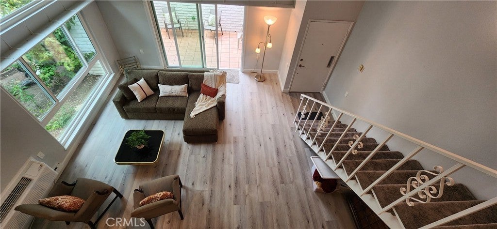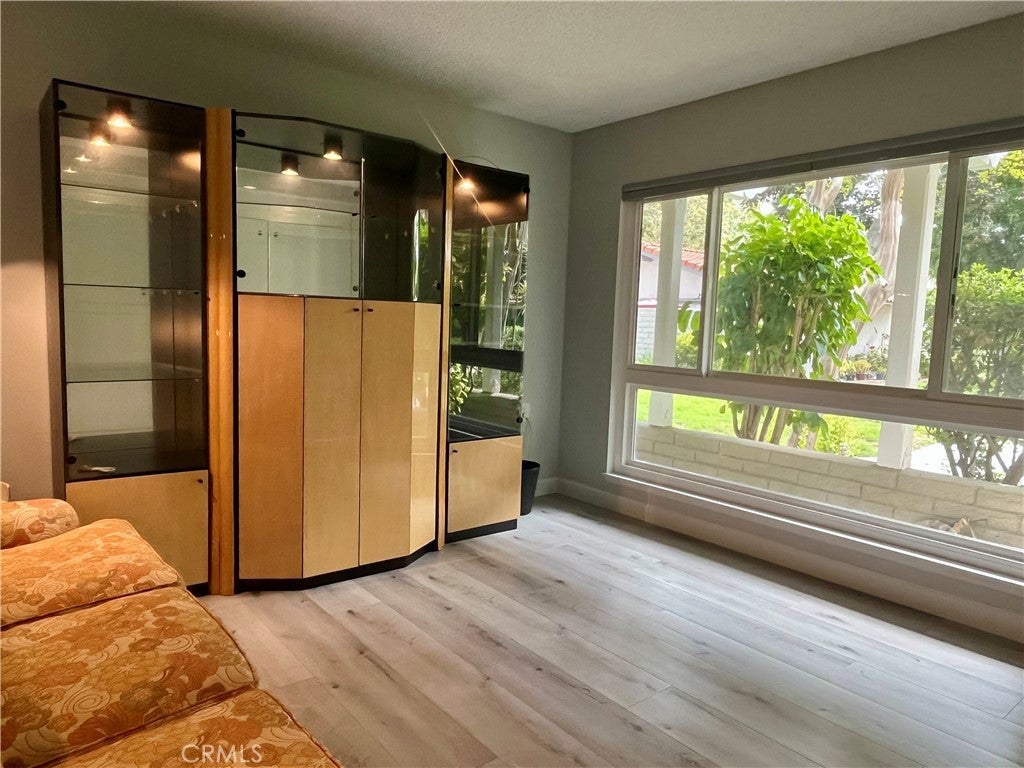 Renovated Seville 2 Model -- Live your best life in this fresh, spacious condo located in the renowned 55+ active adult community of Laguna Woods. Featuring luxury vinyl plank flooring and newer carpet, new windows & window shades, fresh paint and new lighting and mini split A/C & heat downstairs, you will appreciate this home for being clean, efficient, allergy-free and having less trip hazards. On the first level, enjoy living room with vaulted ceiling, tons of windows that let in plenty of natural light and a private enclosed patio with lemon tree. Main level bedroom and bathroom has new shower doors and fixtures. Kitchen includes newer electric cook top, dishwasher, refrigerator, and new Formica counter tops. Upstairs there is a loft set up as an office space overlooking the living room. Primary suite has a private balcony, en suite bathroom and wardrobe mirrored closets. There is ample storage throughout, plus additional store locker in carport. Laundry room is just a few steps away from the unit. The community offers a variety of amenities, including golf, pickleball, fitness center, swimming pools, library, 7 clubhouses, and over 250 social clubs. Convenient to dining, shops and medical services, Laguna Woods is a great place to call home. The community is known for its beautiful scenery and landscape, its friendly residents, and its active lifestyle. You'll love living here!