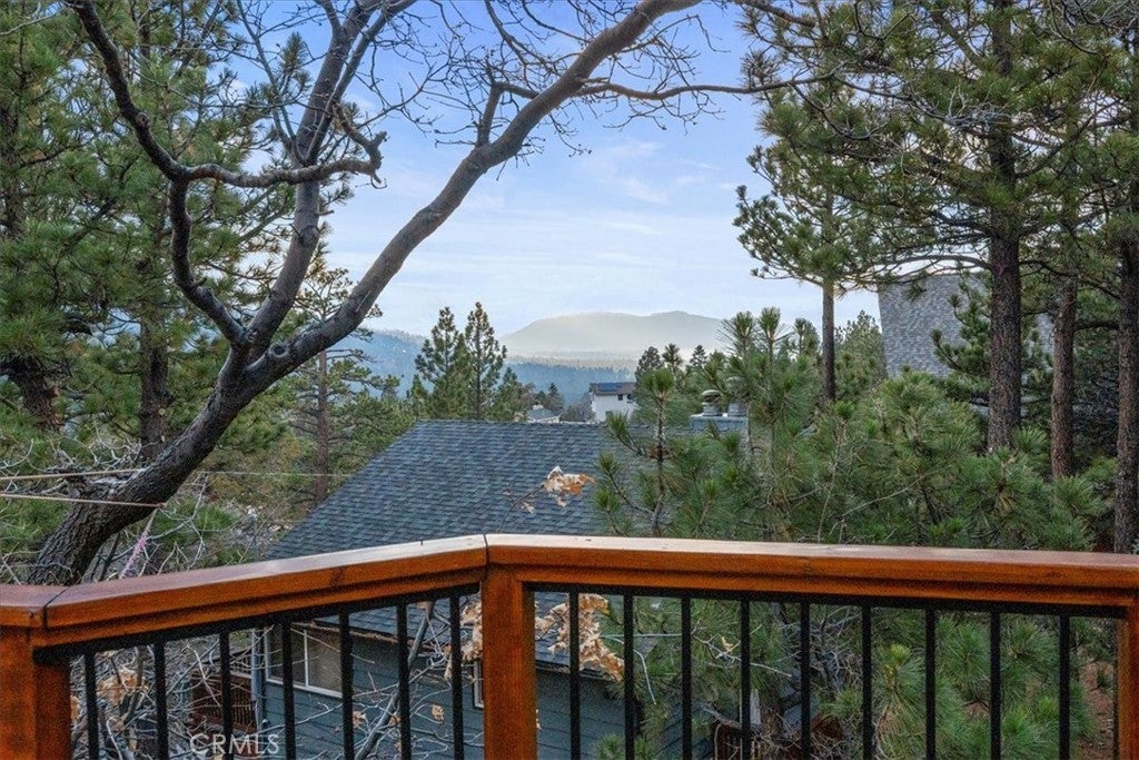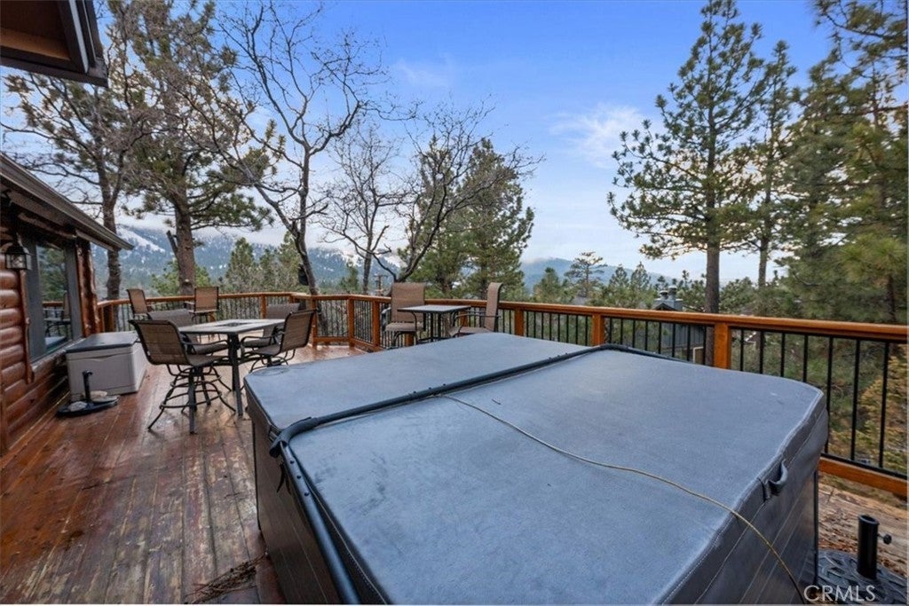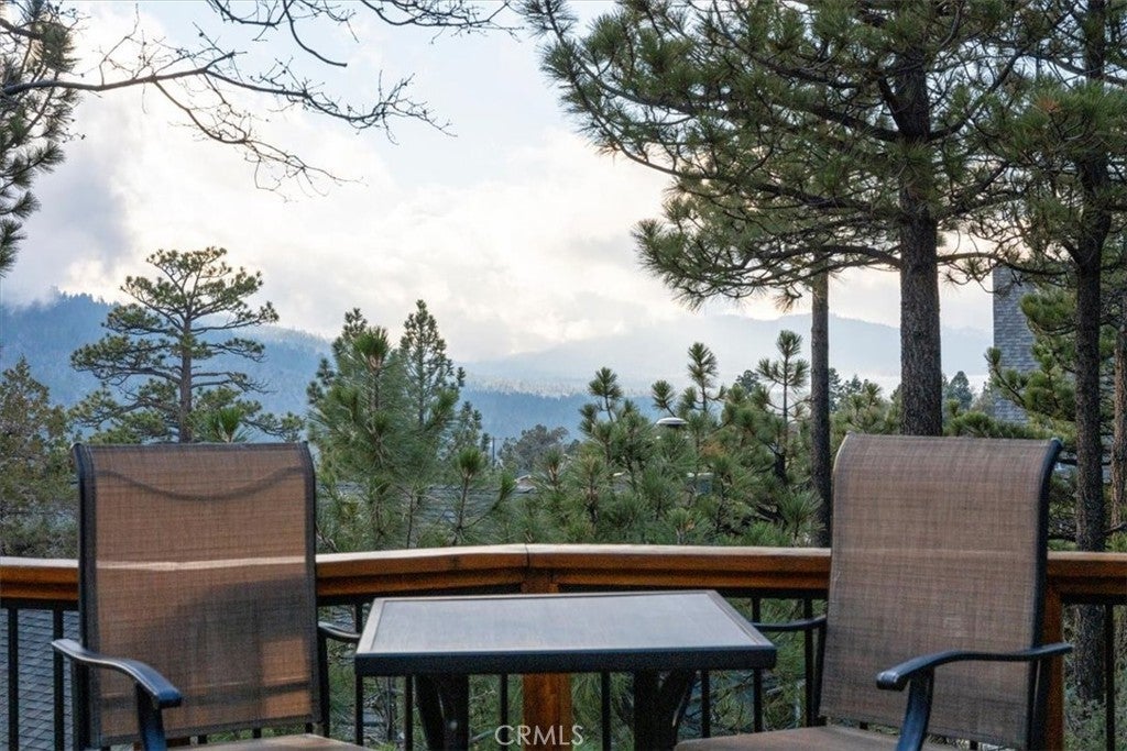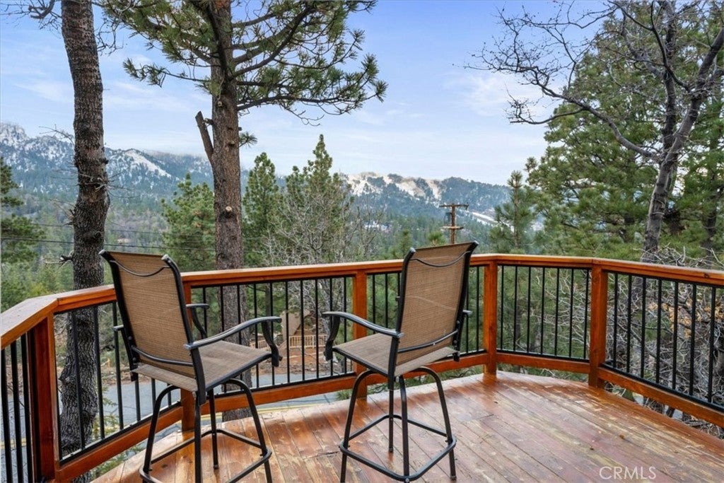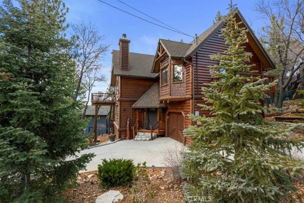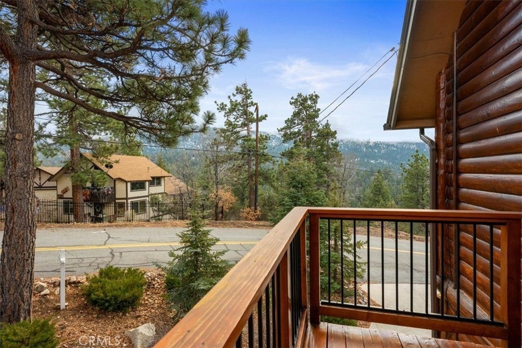 Gorgeous Upper Moonridge Luxury Cabin on a Quiet Street Welcome to this exceptional Upper Moonridge retreat—a beautifully crafted log-siding cabin nestled on a quiet street and offering breathtaking panoramic views of Big Bear Lake, Bear Mountain Ski Resort, surrounding mountains, and neighboring luxury homes. This impressive 3-bedroom, 3-bathroom residence reflects quality construction and timeless mountain charm, lovingly maintained and admired throughout. The brand-new kitchen features modern upgrades including granite countertops, new cabinetry, wood flooring, and a charming greenhouse window, with amenities thoughtfully designed for both style and efficiency. The spacious open-concept living area showcases high ceilings, abundant natural light, and an inviting layout ideal for gatherings, all framed by wide-open, inspiring views. A dedicated coffee and wine station adds a perfect touch for everyday enjoyment and entertaining. Cozy up by the classic brick fireplace or simply take in the sweeping scenery from nearly every angle. The primary suite is a true sanctuary, offering an ensuite bath, stunning views, and a private balcony—perfect for sipping morning coffee or enjoying peaceful birdwatching. Expansive upper-level wood decking provides an ideal setting for stargazing, sunny family gatherings, and entertaining friends. Unwind in the large 8-person hot tub while watching the snowfall or enjoying cozy mountain evenings. This outdoor haven is also perfect for viewing July 4th fireworks, with breathtaking sunsets that are especially magical from this elevated vantage point. Additional highlights include a tankless water heater, generously sized bedrooms, and seamless indoor-outdoor living. The property is beautifully landscaped with whimsical touches, including a charming bridge and swing. Priced to sell and ready to be cherished by its next owners, this remarkable home offers the perfect setting to create lasting mountain memories.