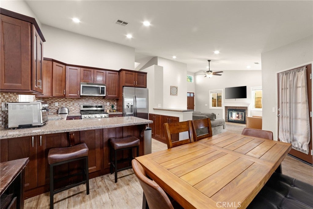 • Interior FeaturesCeiling Fan(s), Separate/Formal Dining Room, Eat-in Kitchen, Open Floorplan, Recessed Lighting, All Bedrooms Down, Main Level Primary, High Ceilings