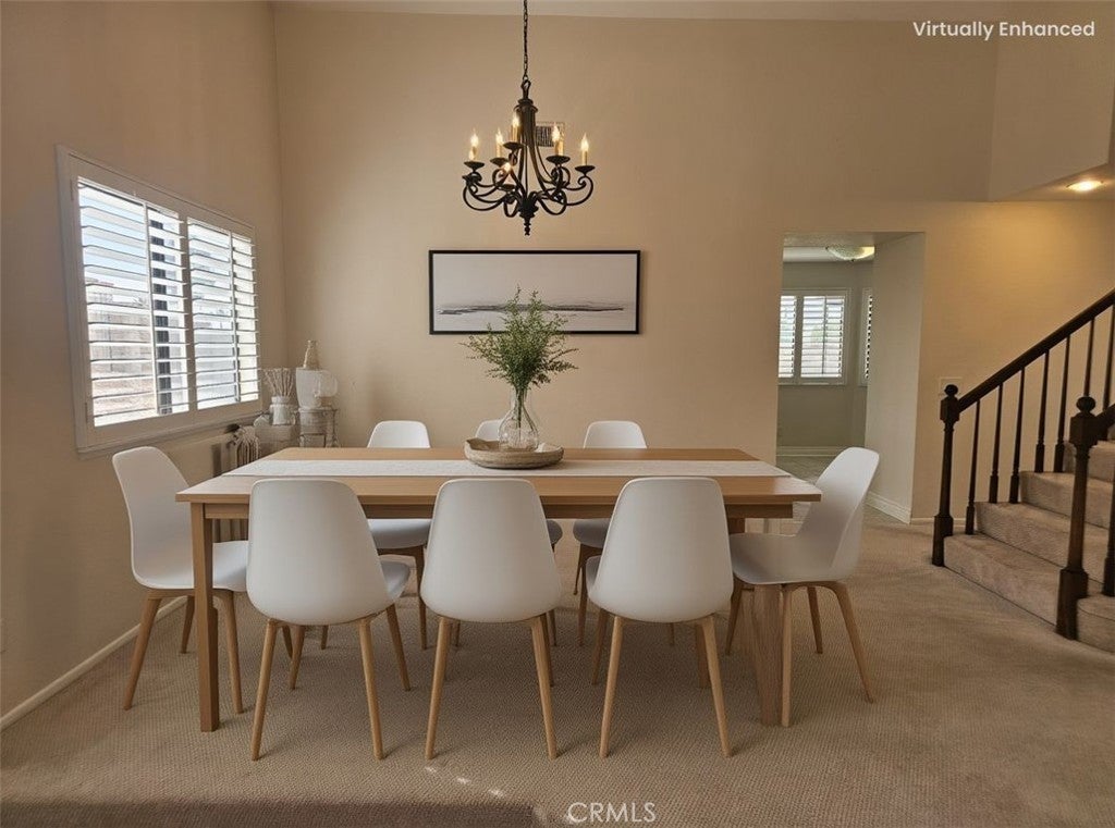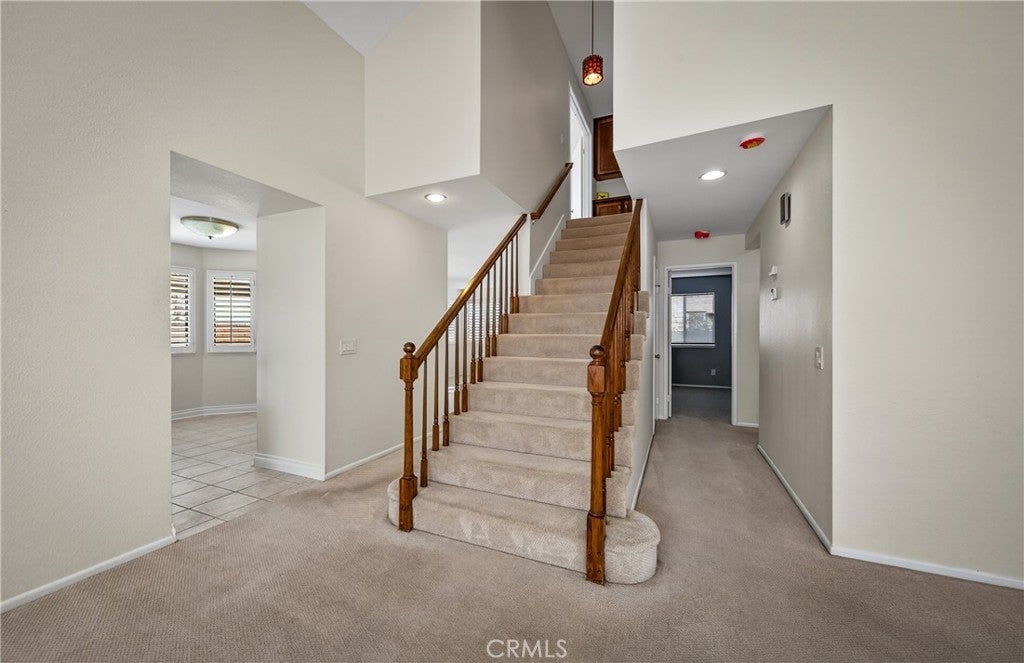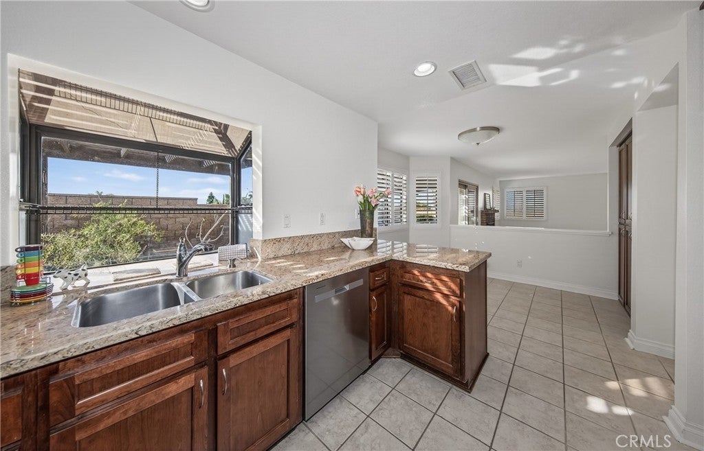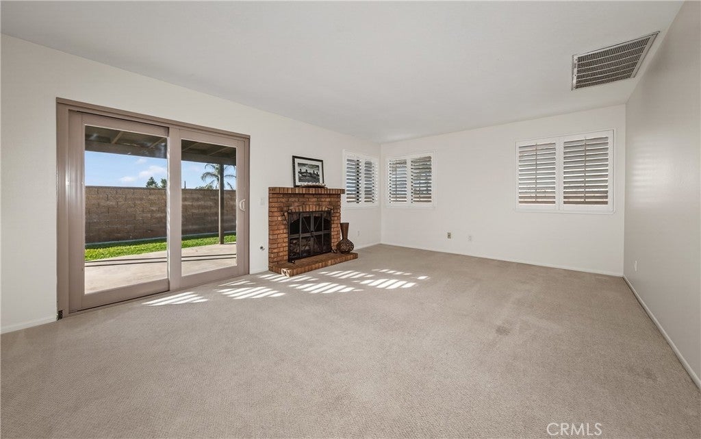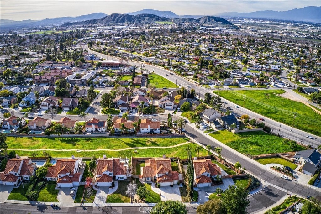 View Home Backing to City-Owned Greenbelt! Enjoy privacy and serene views as this beautiful home backs directly to a greenbelt maintained and owned by the City of Grand Terrace. Offering 4 bedrooms and 3 bathrooms, the thoughtfully designed floor plan includes a downstairs bedroom with mirrored wardrobe doors and a full bath featuring a single sink vanity that is separate from a walk-in shower & commode—ideal for guests or multigenerational living. The entry opens to a formal living and dining area with vaulted ceilings, creating a light and airy first impression. Wood window shutters accent many windows throughout the home. The updated kitchen features stainless steel appliances, a garden window, and an adjoining breakfast nook that overlooks the family room with fireplace and sliding glass door to a covered patio, perfect for indoor-outdoor entertaining. Upstairs you’ll find three spacious bedrooms, all with walk-in closets. The primary suite showcases vaulted ceilings, two walk-in closets, and beautiful views. The updated primary bath includes a dual-sink vanity with a central window, oval soaking tub, separate shower, and tile flooring. The upstairs hall bath offers a single-sink vanity and shower-over-tub. Additional highlights include indoor laundry, a 3-car garage, block wall fencing surrounding the property, and views from multiple rooms throughout the home.