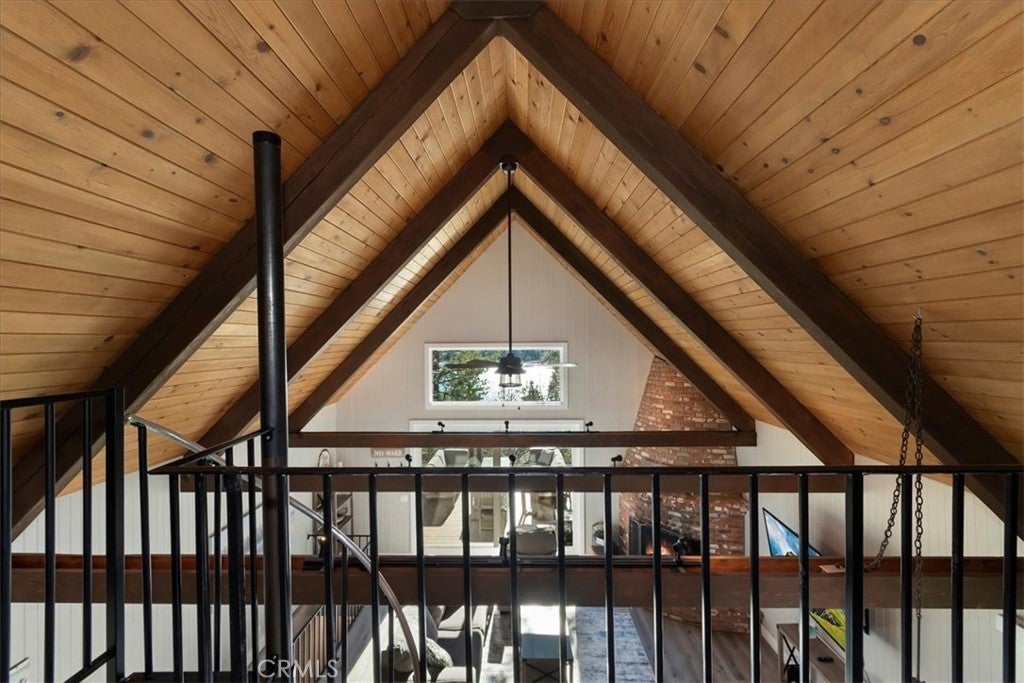 - Interior FeaturesCeiling Fan(s), Cathedral Ceiling(s), Furnished, High Ceilings, Open Floorplan, Bedroom on Main Level, Main Level Primary, Beamed Ceilings, Living Room Deck Attached