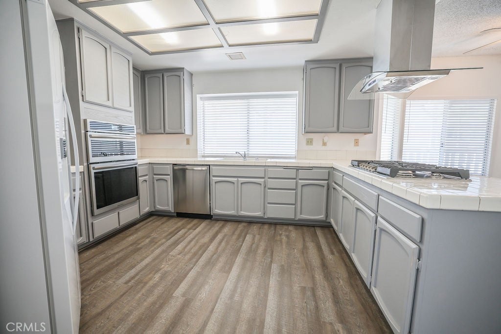 • AppliancesBuilt-In Range, Double Oven, Dishwasher, Refrigerator, Range Hood