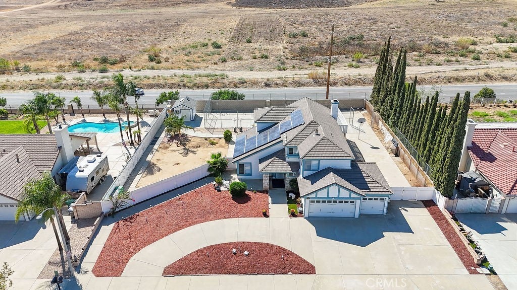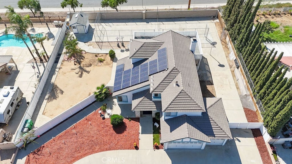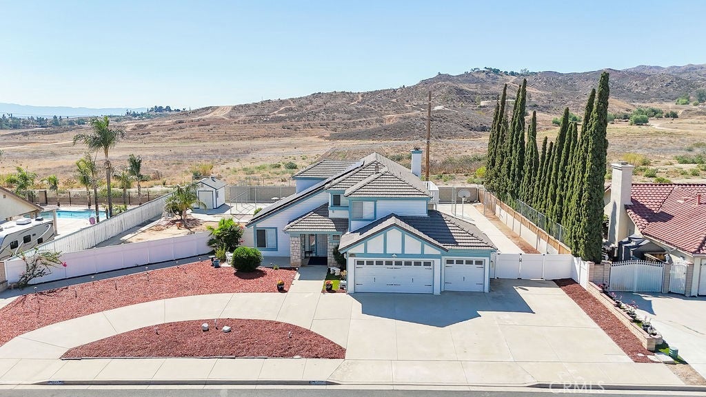 WELCOME HOME to this expansive 5-bedroom, 3-bathroom home situated on a generous half-acre lot in a quiet Moreno Valley neighborhood. From the moment you arrive, you'll notice the inviting curb appeal featuring low-maintenance landscaping, a large circular driveway, RV parking, and a spacious three-car garage. Step through the double-door entry and discover 3,321 square feet of living space enhanced by brand new luxury vinyl plank flooring throughout. Soaring ceilings and abundant natural light highlight the freshly painted interior and new window blinds, creating a bright and welcoming atmosphere.The updated kitchen offers new stainless steel appliances, including a dishwasher, oven, microwave, and gas range, making it ideal for everyday living and entertaining. The thoughtful floor plan includes one bedroom and a full bathroom on the main level, while upstairs you'll find three additional bedrooms along with a spacious primary suite. The primary bedroom features access to a private deck that stretches nearly the entire width of the home, providing a peaceful place to relax and take in the backyard views.Beneath the deck is approximately 678 square feet of covered outdoor living space, perfect for year-round entertaining. The backyard is truly a retreat with its own tennis and pickleball court, a one-mile walking track, planter boxes, fruit trees, and an oversized shed that could easily serve as a workshop, man cave, or she shed. Additional highlights include a prepaid solar lease through 2037, NO HOA, low taxes, and a prime location close to shopping, schools, and commuter-friendly freeways. Don’t miss this opportunity to own a spacious property with incredible amenities! SCHEDULE A SHOWING TODAY!