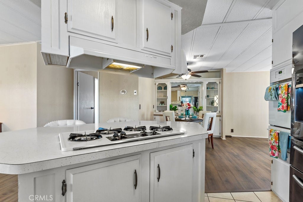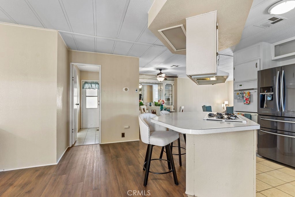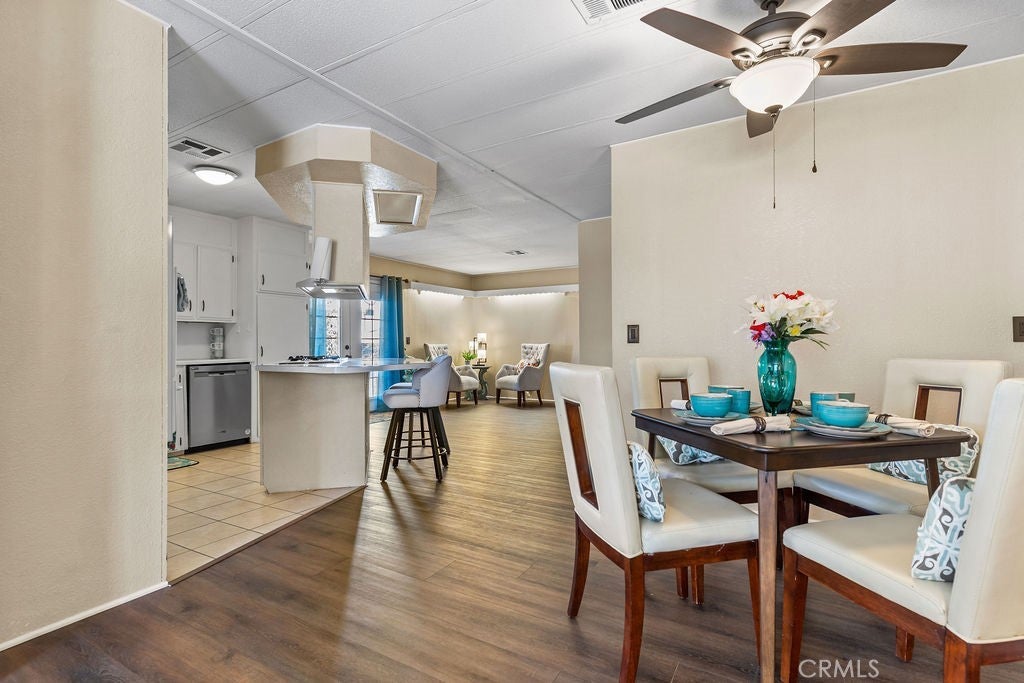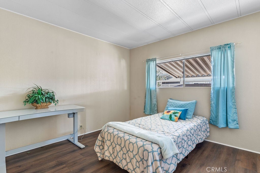 Welcome to your new retirement home! 2 bedroom, 2 bathroom charming home with covered parking and low-maintenance landscaping. Large living room, dining room with ceiling fan, built-in hutch, new dishwasher, kitchen with gas stove and wall oven for baking convenience, drinking water faucet with water purification system, kitchen pantry, and plenty of storage. French doors with built-in blinds open to large front porch with new tan outdoor carpet – enjoy a cup of morning coffee and al fresco dinner outdoors! Brand new luxurious dark brown mahogany-look flooring, tile flooring in kitchen and bathrooms, warm neutral tone paint throughout, gas dryer and washer hook-ups, new guest bathroom vanity with sink & faucet, newer air conditioner, new lights, two outdoor sheds. Got pets? The lawn area is behind the neighbor’s home. RV parking lot within community. Brand new double-paned windows throughout. Gated neighborhood for your comfort and privacy. Walk, jog, bicycle, or drive your golf cart on interior roads. Victor Villa offers monthly events, recreation room, swimming pool, exercise gym, community pot lucks, and other amenities. Low utilities and affordable rent for leased land! Senior citizen age 55+ park and all residents must qualify with Victor Villa management. Relax, recharge, and enjoy the high desert life with active seniors in a wonderful community. Located close to I-15 freeway, with shopping, Costco, and gas stations nearby. Envision your new life in an independent setting with plenty of ambiance. Pay cash or obtain great financing with options from your favorite manufactured home lender. Owner is open to carry. Contact park for current space rent and resident requirements. Appliances, furniture, and décor not included.
