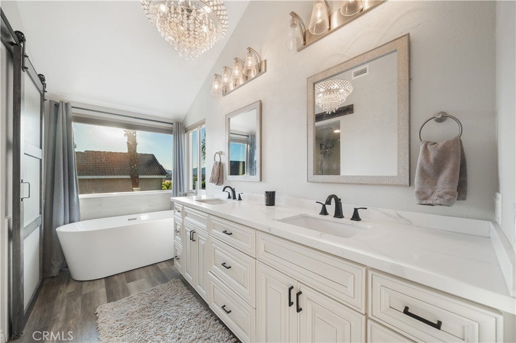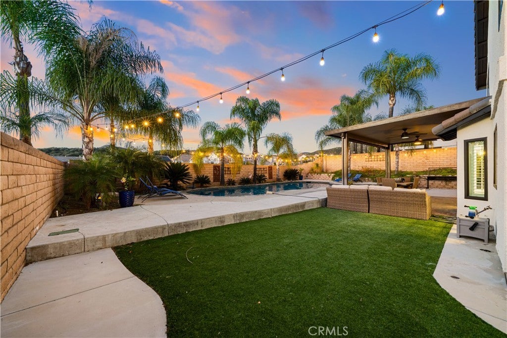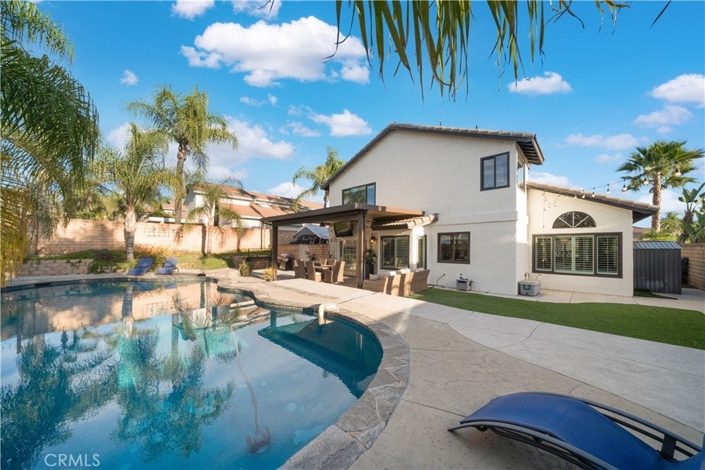 Welcome to this beautifully upgraded Murrieta residence on Copper Craft, offering a rare combination of space, functionality, and resort-style living. This 4-bedroom, 2.5-bath home is thoughtfully designed for everyday comfort, entertaining, and multigenerational needs, with no HOA and low taxes. Enter through double doors into a bright and open interior featuring vaulted ceilings and neutral designer tones throughout. Formal living and dining areas provide elegant gathering spaces, while the upgraded kitchen serves as the heart of the home with newer cabinetry, quartz countertops, stainless steel appliances, wine refrigerator, recessed lighting, coffered ceiling, in-kitchen eating area, and a movable quartz island. The kitchen opens seamlessly to the family room with a gas fireplace and picturesque views of the backyard oasis. The main level includes a convenient powder room and a private laundry room tucked behind a custom barn door. All bedrooms are located upstairs, providing separation and privacy ideal for multigenerational living. The spacious primary suite is entered through French doors and features high ceilings, a large picture window, and a spa-inspired ensuite bath with soaking tub, walk-in shower, dual quartz vanity, and walk-in closet. Three additional generously sized bedrooms and a full bath complete the upper level. Step outside to your private resort-style backyard featuring a sparkling in-ground pool, patio ideal for entertaining, artificial turf, mature palm trees, block wall fencing, and scenic hill views. RV and recreation enthusiasts will appreciate the gated RV parking with 30-amp hookup and expansive side yard suitable for RVs, trailers, or additional storage. The three-car garage includes finished flooring and electric vehicle hookup. Additional features include paid-off solar that is heating the pool, tankless water heater, newer dual-pane windows and whole house fan. Conveniently located near top-rated Murrieta schools, walking trails, shopping, hospitals, Costco, and easy access to the 15 and 215 freeways. Close to the Santa Rosa Plateau, Downtown Murrieta, Old Town Temecula, and Temecula Wine Country. This home offers the space, amenities, and lifestyle today’s buyers are seeking.