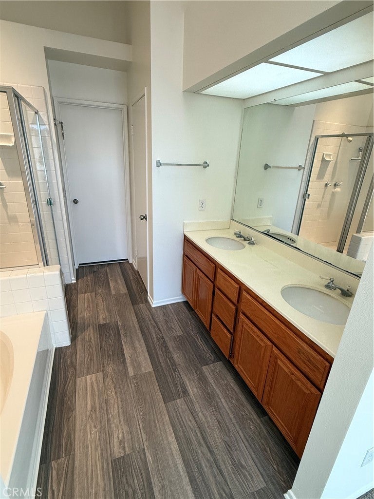 Beautifully maintained and truly move-in ready, this charming townhome is nestled within one of Ontario’s most desirable communities, served by the highly regarded Cucamonga school district. Freshly painted and enhanced with new carpet and new laminate flooring upstairs, the home offers both comfort and style. The spacious primary suite is a private retreat featuring a vaulted ceiling, walk-in closet, and en-suite bathroom with dual vanities, an oversized soaking tub, and a glass-enclosed shower. Step onto your private balcony and enjoy serene pool views. A skylight above the stairwell bathes the upper level in natural light, creating a bright and welcoming ambiance. The second bedroom showcases picturesque mountain views, a generous closet, and convenient access to a full hallway bathroom. Additional highlights include a double attached garage with direct entry into the kitchen, as well as a front entrance that faces the pool area—enhancing the home’s resort-style atmosphere. Ideally located near Ontario Mills Mall, Metrolink, Ontario International Airport, Toyota Arena, and Victoria Gardens, this exceptional home offers convenience, lifestyle, and access to excellent schools—all in one perfect setting.