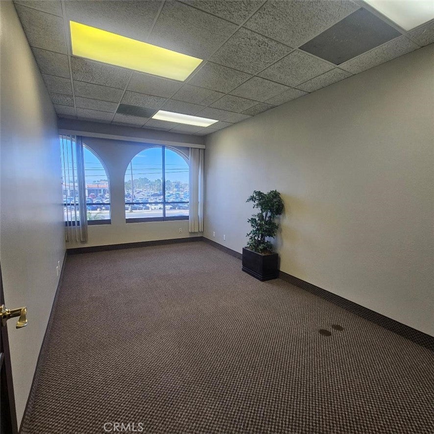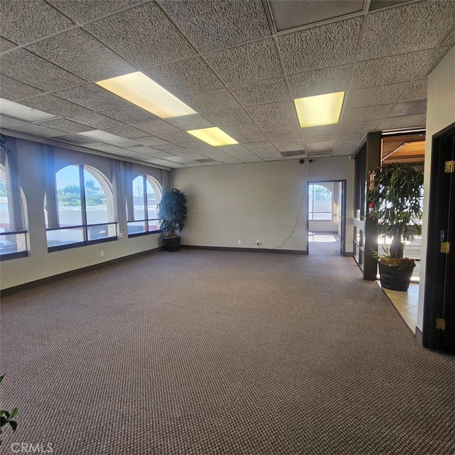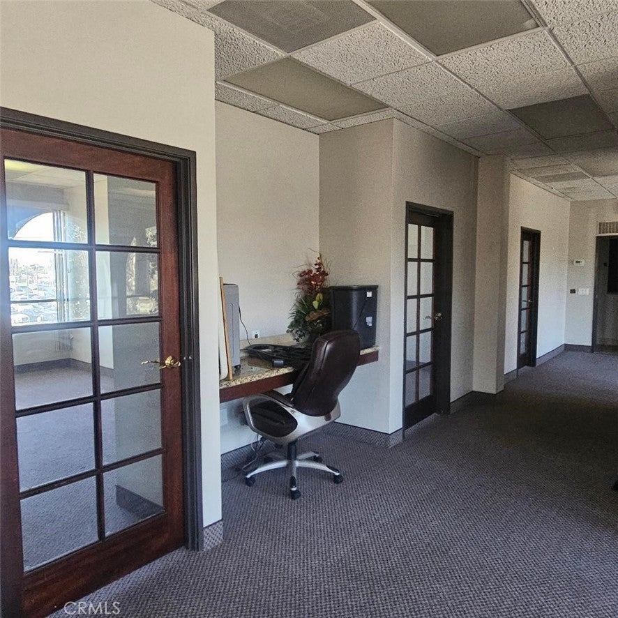 Upstairs Office space for rent! Great location easy access to the 15 freeway! Approximately 2500 square feet, with a covered balcony. 4 Private offices, built in workspace and plenty of other space. Ample number of electrical outlets, Interior freshly painted, carpets freshly cleaned. Kitchen and 2 bathrooms. 2 staircases. Water, trash, gas, and landscaping included in the rent. Approximately 12 parking spaces. Tile flooring in kitchen hallways and bathrooms.