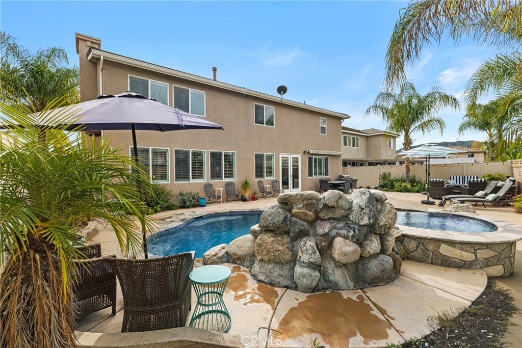 PRICED TO SELL!! Welcome to the home you've been searching for. This stunning 6 bedroom, 4,000+ sq ft pool home located in the highly sought-after Copper Canyon community of Murrieta, one of the city’s most desirable neighborhoods and close to top-rated schools, shopping, golf, and outdoor recreation. A formal entry opens to a bright, well-designed floor plan featuring high ceilings, crown molding, upgraded flooring, and custom paint throughout. The home offers formal living and dining spaces plus a beautifully upgraded chef’s kitchen with granite countertops, stainless steel appliances, a large center island, and a built-in refrigerator—opening seamlessly to a spacious family room, perfect for everyday living and entertaining. The MAIN FLOOR INCLUDES 2 BEDROOMS- one with a full ensuite bathroom, ideal for guests or a home office. Upstairs, the expansive primary suite SPANS THE ENTIRE WIDTH OF THE HOME with a fireplace and ensuite bath, and 2 closets. Upstairs also has three additional generously sized bedrooms one of which has an additional en-suite bath. The backyard is designed for both relaxation and entertaining, featuring a custom pool and spa, spacious patio, and retractable awning. Additional highlights include 42 FULLY PAID-OFF SOLAR PANELS, a brand-new whole-house water filtration system, two newer A/C units, plantation shutters, Pebble Tec pool finish, and a converted 3rd car garage offering flexible space for a gym, media room, or home office. Click virtual tour to see the listing video!