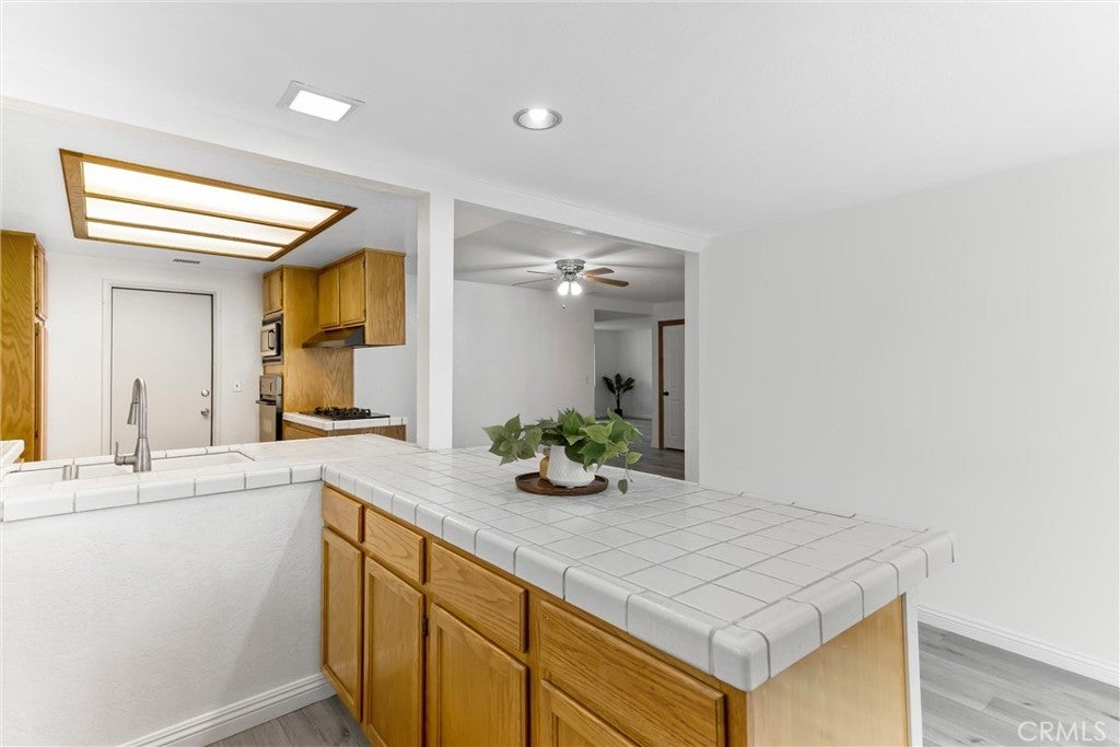 Welcome to 22246 Cardinal St, Grand Terrace! This charming 3-bedroom, 2Bath home is nestled in a peaceful neighborhood known for its Blue Mountain hiking trail, offering breathtaking sunset views. Enjoy the perfect blend of small town charm, schools, and easy access to parks, shopping, and major freeways. This home greets you with nice landscaping, freshly painted exterior trim, RV parking and a 2 car garage. Inside, the open floor plan is ideal for modern living, features large kitchen tiled countertops, new microwave, fresh paint, LVP flooring thru-out, recessed lighting and new updated bathrooms, new closet doors, new light fixtures inside and out. The cozy living room with fireplace creates a warm atmosphere for relaxing or entertaining quests. Step outside to a generous backyard with a covered patio , perfect for BBQS, outdoor dining, or unwind under the stars. A storage shed adds convenience while the lush greenery provides a tranquil retreat. This home is move in ready and waiting for you! Schedule your private tour today!