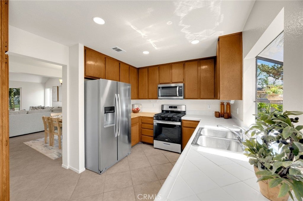 Welcome to 3621 Honeysuckle Drive in the highly desirable city of Chino Hills! This spacious 4-bedroom, 3-bathroom home offers a versatile floor plan with a bedroom and full bathroom conveniently located on the main floor—perfect for guests, multi-generational living, or a home office. Upon entry, you’re greeted by a bright and airy living room with soaring ceilings. The interior has been freshly repainted and features brand-new kitchen appliances. Just off the kitchen, a large family room with fireplace provides the perfect space for gathering. Upstairs, you will find two additional bedrooms along with a generously sized primary suite. Natural light fills the home, enhancing the comfortable living areas designed for both everyday living and entertainment. Step outside to enjoy beautiful, lush greenery in both the front and backyard. The covered patio in the backyard provides a peaceful and private outdoor setting. Additional highlights include a rare 3-car garage and RV parking, offering plenty of room for vehicles, storage, and recreational equipment. Located in a prime Chino Hills neighborhood and served by highly rated Chino Hills schools-Litel Elementary, Canyon Hills Jr High and Ayala High School. This home combines comfort, functionality, and an excellent location close to The Shoppes at Chino Hills, Ranch Market and Chino Spectrum Market Place.
