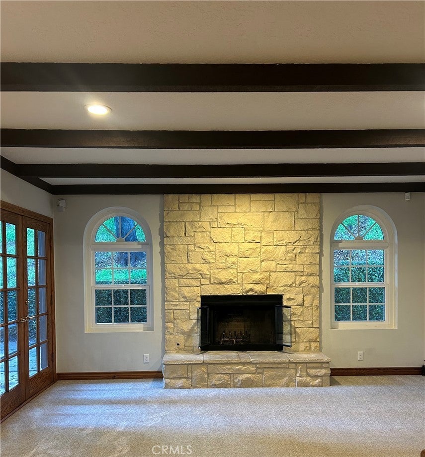 LIVE LIKE ROYALTY - EVERY DAY! You wont want to miss this exceptional family residence that offers timeless castle-style architecture paired with refined modern living. Set amid natural surroundings, this home provides privacy and a rare sense of retreat while still delivering the space and comfort today's discerning buyers expect. A truly distinctive property for those seeking character and a connection to nature. A grand double door entry provides space to welcome your guests before gathering in the sunken family room, showcasing beamed ceilings, to enjoy a conversation in front of the stone fireplace or sitting at the built in bar made of solid oak that features a wine rack, refrigerator and glass front cabinets. French doors lead to the back yard for a seamless indoor/outdoor flow. Steps away is an elevated breakfast nook that also provides French door access to the outdoors and to an open kitchen integrating beauty and function with 2 sinks, 5 burner range, double lazy susan shelving all set in solid oak cabinetry, garden window and work station/desk. A pocket door provides privacy from the kitchen to the formal dining room that is distinguished by a recessed ceiling and elegant proportions. After a great dinner you can head to the expansive sunken living room that invites relaxation with a second fireplace, raised hearth, and bay window. A private main-level suite with a ¾ bath and backyard access offers ideal accommodations for guests or multi-generational living. A guest powder room and huge storage closet complete the lower level. As you ascend the curved staircase, the upper level reveals 3 spacious secondary bedrooms - one that is ensuite. An additional secondary bath is conveniently located adjacent to custom hallway storage. The primary suite is fit for a King and/or Queen with a romantic fireplace and seating area. Find your sanctuary in the relaxing jetted tub or enjoy a nice shower before perusing in the large walk in closet that is well lit with natural light. A laundry room with folding counter and cabinets complete the upstairs. Notable upgrades include a top floor humidifier, central vac, water softener, newer dual pane windows throughout, SOLID OAK CROWN MOLDING, BASEBOARDS, DOOR CASINGS AND CABINETS THRU OUT, security system, intercom to every room and outside. There is also a 3 car garage with openers, abundant attic space, new gutters and ROOM FOR A POOL!!! The only thing missing is you!