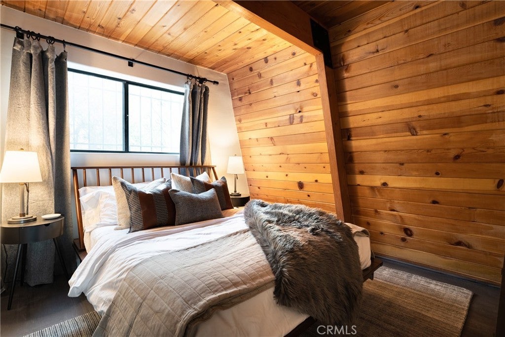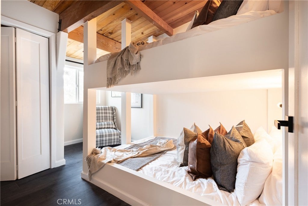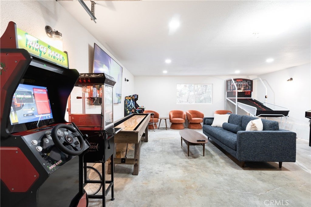 Enjoy expansive ski slope and mountain views from this beautifully remodeled and thoughtfully designed mountain retreat, offering the perfect blend of modern comfort and classic Big Bear character. Set on a quiet street yet conveniently close to the lake, ski resorts, trails, zoo, and Big Bear Village, this home delivers both privacy and accessibility, making it ideal for full-time living, second-home enjoyment, or investment potential. Spanning approximately 2,402 square feet, the home features a flexible multi-level floor plan with 5 bedrooms and 3 bathrooms, creating space for gathering while still allowing room to spread out. Warm wood accents, vaulted ceilings, and clean modern finishes work together to preserve the cabin feel while elevating the overall design. The main living area is open and inviting, anchored by a charming fireplace and seamlessly connected to the dining space and remodeled kitchen, perfect for entertaining and everyday living alike. Multiple levels provide thoughtful separation of space, with a private bedroom and bath on the lower level, the heart of the home and 2 bedrooms on the main level, and 2 bedrooms and a loft-style hangout and game area adding another layer of versatility upstairs. The garage has been transformed into a standout bonus space, currently set up as an impressive game room. Outdoor living is equally inviting, featuring a spacious deck, spa, fire pit, and seating areas designed for year-round enjoyment, while the slopes and mountain views enhance the setting and surrounding trees create a true cabin-in-the-woods atmosphere. Additional highlights include ample parking, an EV charger, a dedicated laundry area, and a well-planned layout that functions beautifully in all seasons, making this a high-quality mountain home in one of Big Bear’s most convenient and desirable locations!