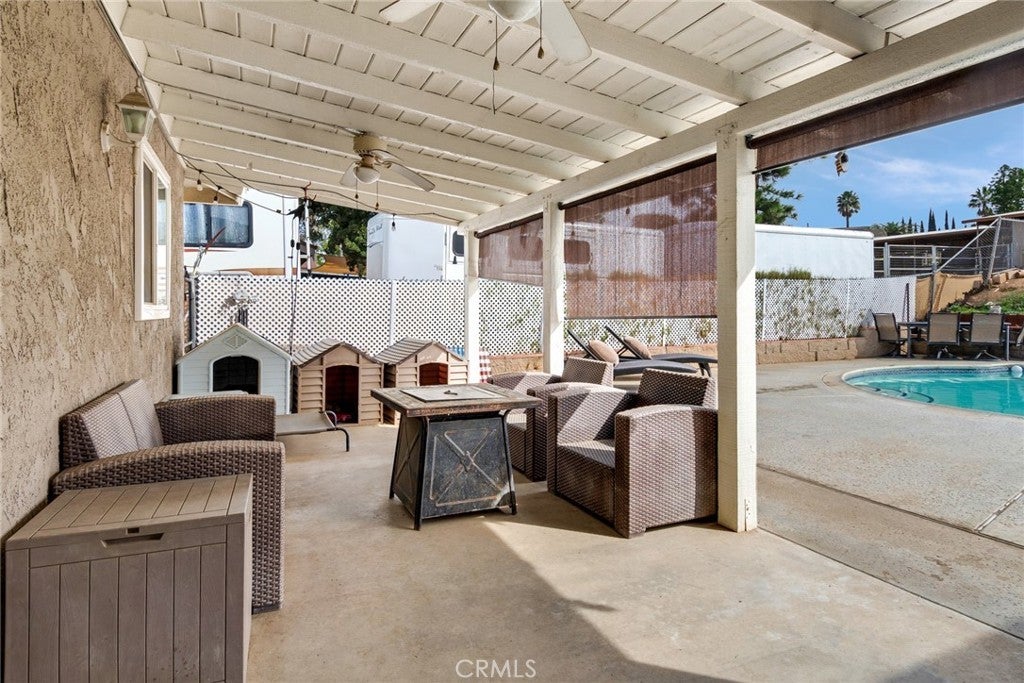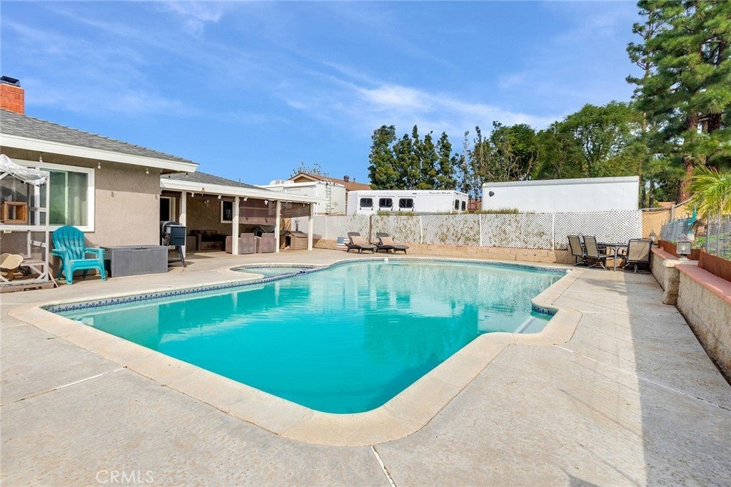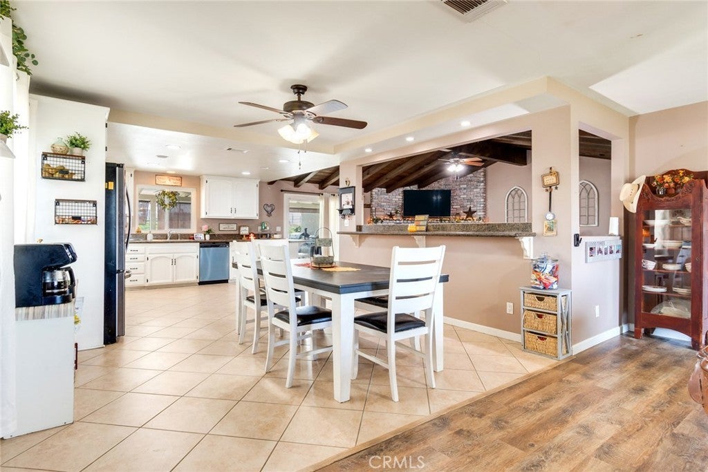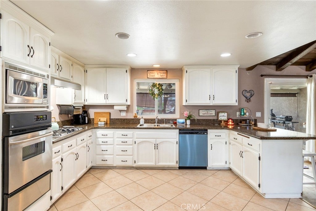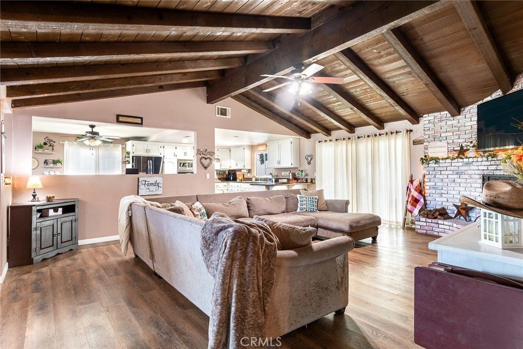 Expansive single-story equestrian-friendly property offering the quintessential Norco lifestyle on a 20,037 sq. ft. lot. This well-maintained home features 4 bedrooms, 1.75 bathrooms, and 2,395 sq. ft. of open-concept living space, with a large living room, kitchen, and dining area flowing seamlessly together—ideal for both everyday living and entertaining. The spacious living room is highlighted by beautiful exposed wood beams and a brick wood-burning fireplace with gas starter, creating a warm and inviting focal point. The formal dining area is currently configured as an entertainment space with a pool table and bar, showcasing the flexibility of the floor plan and easily convertible back to a traditional dining area. The dine-in kitchen is both functional and inviting, featuring painted cabinetry, Whirlpool stainless steel appliances, a 5-burner gas cooktop, brand-new dishwasher, and pantry with pull-out shelving. Flooring throughout includes laminate flooring, with tile in the bathrooms. The primary suite is generously sized and comfortably accommodates larger furniture, offering a private retreat with an updated walk-in shower, separate soaking tub, dual-sink vanity, and three spacious closets. The three guest bedrooms include laminate flooring and ceiling fans, and additional hallway storage adds everyday convenience. A separate indoor laundry room is conveniently located just off the garage and provides excellent built-in storage. Recent exterior improvements include fresh exterior paint and newer vinyl windows, enhancing curb appeal and energy efficiency. Outdoor spaces are designed for enjoyment and function, featuring a sparkling swimming pool approximately 9 feet deep, a generously sized spa, and a grassy front yard. Along the side of the home is a fenced dog run currently used as a chicken coop, approximately 8 ft x 20 ft. Equestrian amenities include four horse stalls and two sheds—one for tack and one for storage/feed. Additional highlights include a 3-car attached garage with excellent storage, garage workbench included, 34-ft RV parking, and paid-off solar with 27 panels, providing long-term energy savings. Ideally located near SilverLakes Equestrian & Sports Park, offering convenient access to equestrian facilities, sports fields, and community events. A rare opportunity to own a versatile property that blends generous living space, character details, thoughtful upgrades, outdoor amenities, and Norco’s signature equestrian lifestyle.