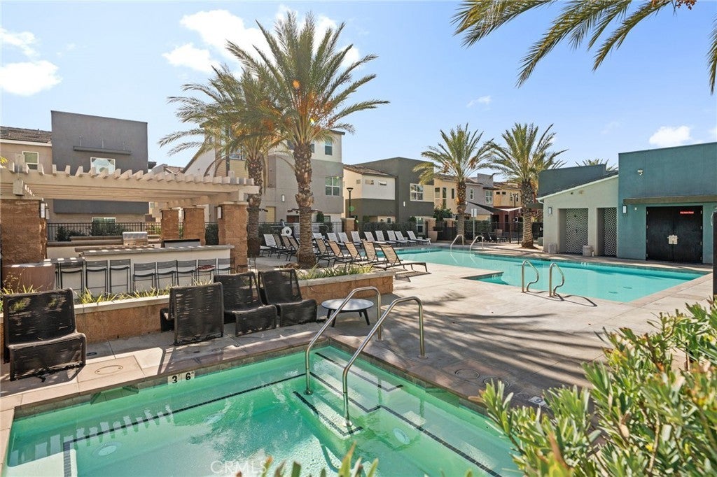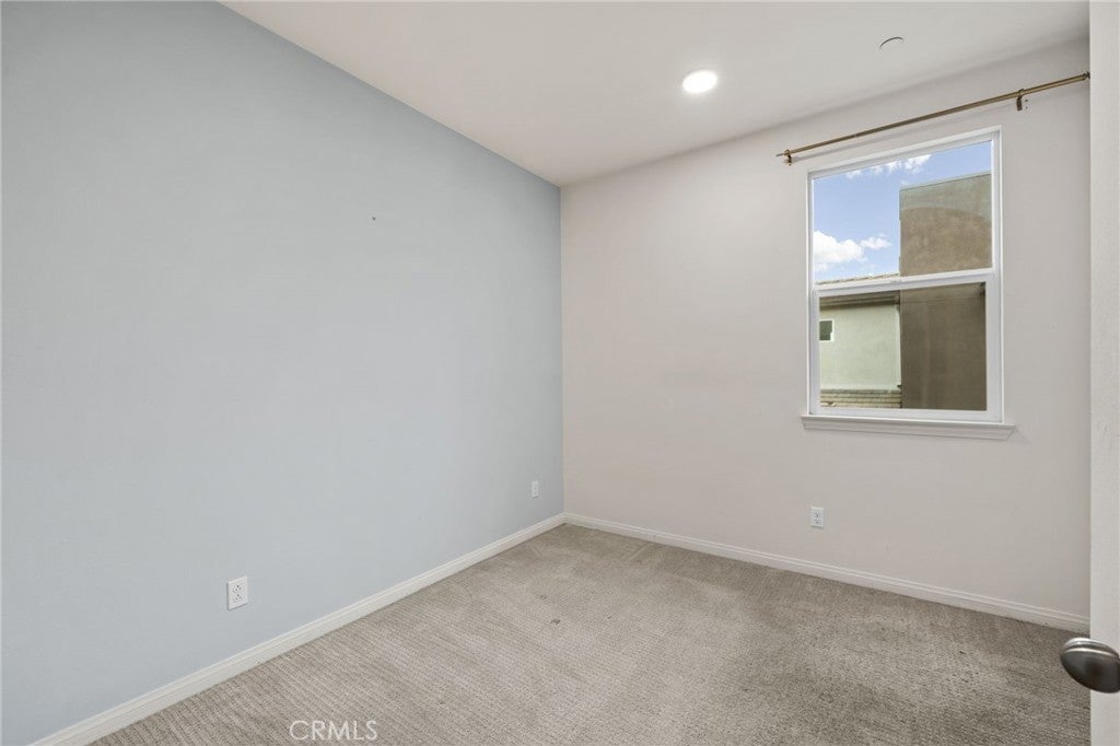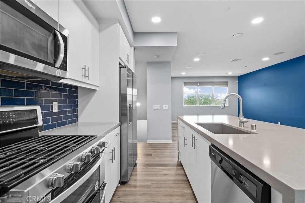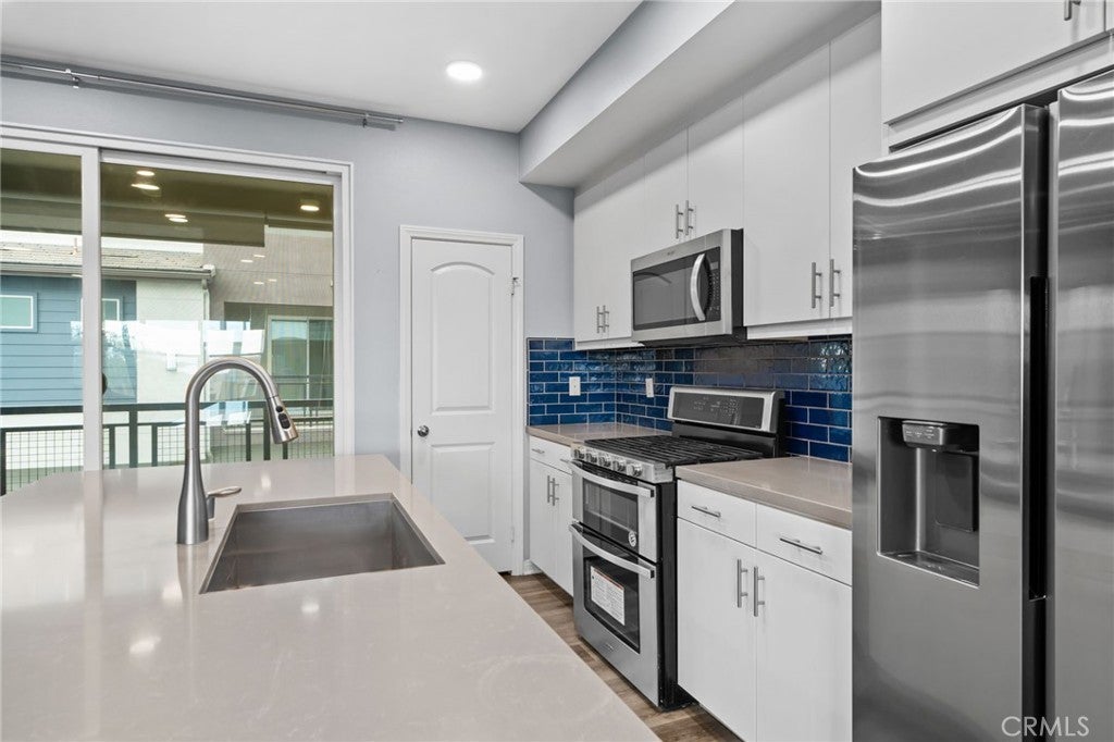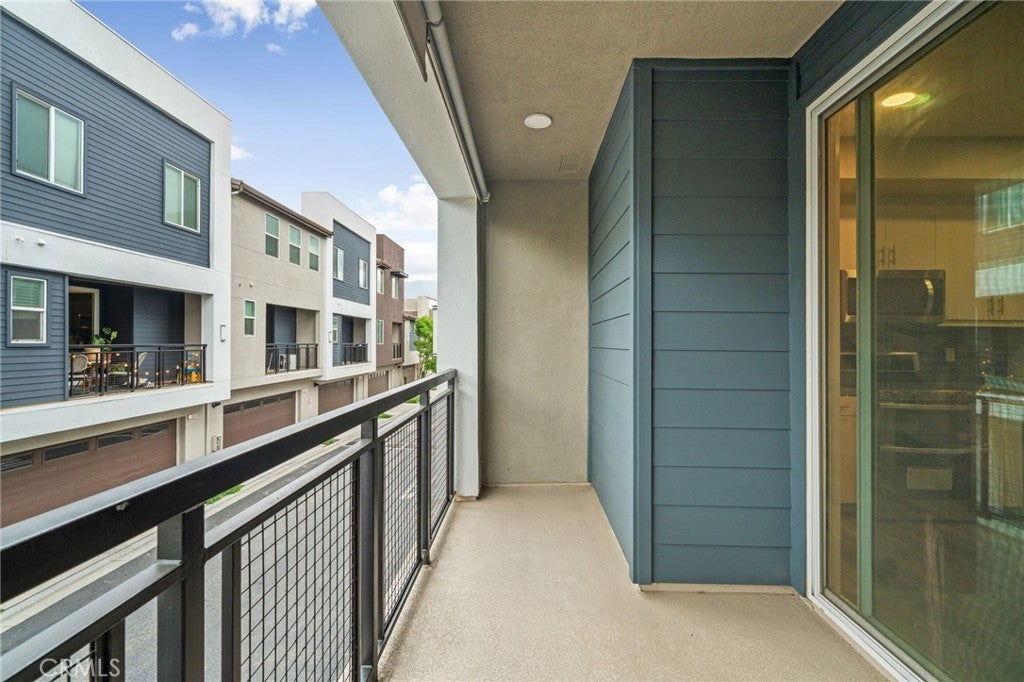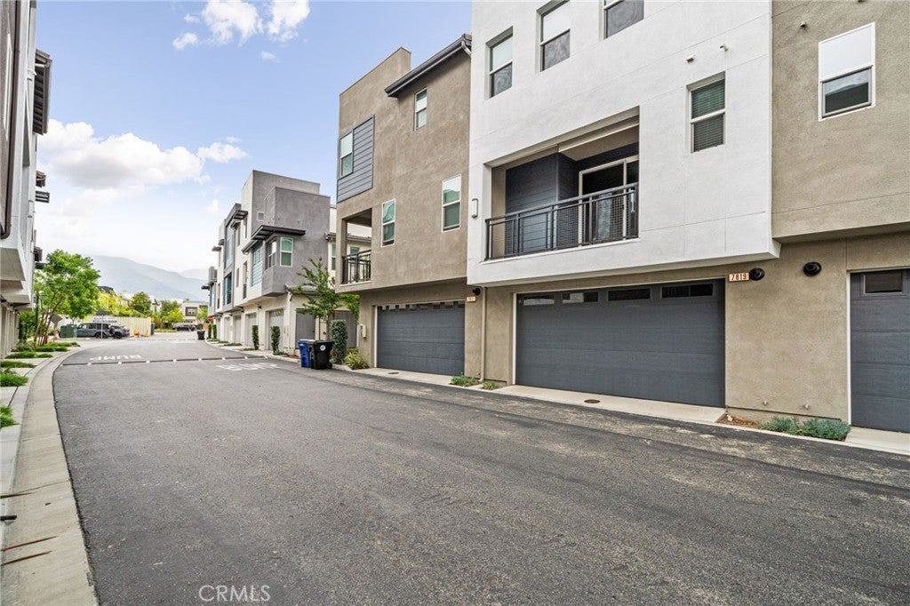 Welcome to this stylish three-level condo offering 3 bedrooms and 3 bathrooms with a thoughtfully designed layout perfect for modern living. On the entry level, you’ll find a versatile office or den, ideal for working from home or a private retreat, along with a convenient powder bath and access to the two-car garage located at the rear. The second level is the heart of the home, featuring a bright open-concept floor plan with a spacious family room, dining area, and a stunning kitchen. The kitchen showcases a waterfall-edge island, ample cabinetry, pantry and and seamless flow for entertaining. Sliding glass doors lead to a private balcony—perfect for morning coffee or evening relaxation. An additional powder bath on this level adds extra convenience. Upstairs, the third level offers a relaxing primary suite complete with a walk-in closet and a spa-like primary bathroom featuring dual sinks and a walk-in shower. Two additional bedrooms share a full bathroom, and a laundry closet with space for a stackable washer and dryer is conveniently located on this floor. Residents enjoy fantastic community amenities, including a swimming pool, hot tub, clubhouse, BBQ and picnic areas and a fitness center. Ideally located near Target, Victoria Gardens, and with easy access to the 210 and 15 freeways, this home blends comfort, style, and convenience in one exceptional package.