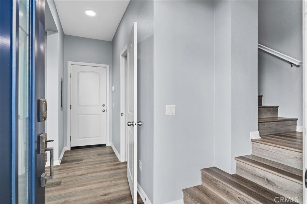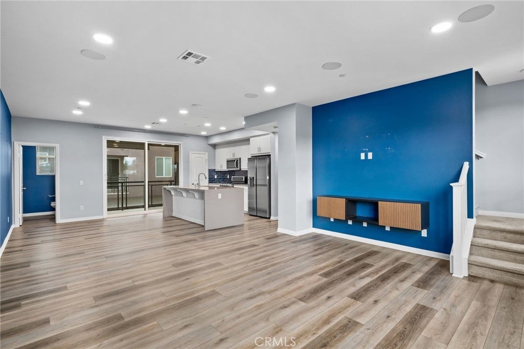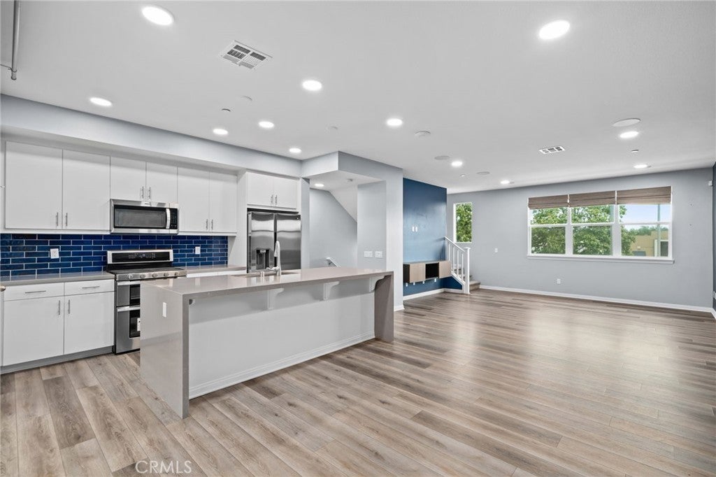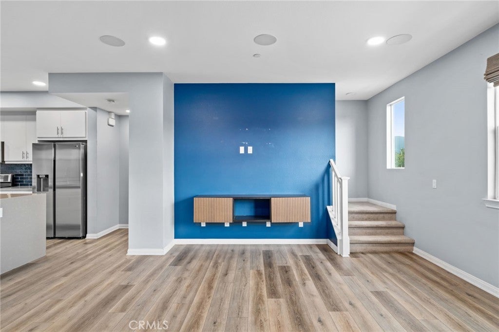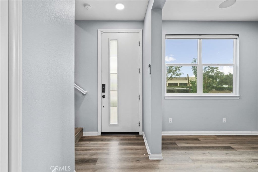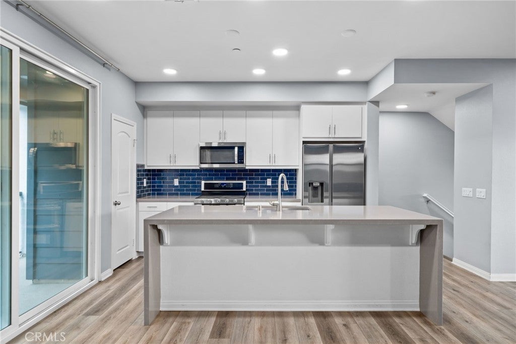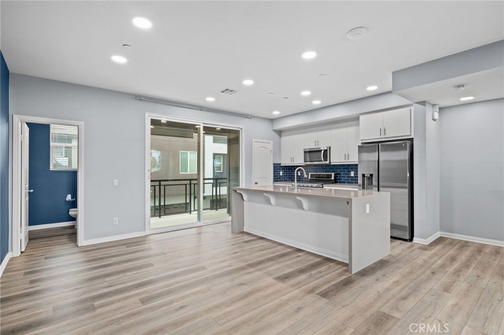 Welcome to this stylish three-level condo offering 3 bedrooms and 3 bathrooms with a thoughtfully designed layout perfect for modern living. On the entry level, you’ll find a versatile office or den, ideal for working from home or a private retreat, along with a convenient powder bath and access to the two-car garage located at the rear. The second level is the heart of the home, featuring a bright open-concept floor plan with a spacious family room, dining area, and a stunning kitchen. The kitchen showcases a waterfall-edge island, ample cabinetry, pantry and and seamless flow for entertaining. Sliding glass doors lead to a private balcony—perfect for morning coffee or evening relaxation. An additional powder bath on this level adds extra convenience. Upstairs, the third level offers a relaxing primary suite complete with a walk-in closet and a spa-like primary bathroom featuring dual sinks and a walk-in shower. Two additional bedrooms share a full bathroom, and a laundry closet with space for a stackable washer and dryer is conveniently located on this floor. Residents enjoy fantastic community amenities, including a swimming pool, hot tub, clubhouse, BBQ and picnic areas and a fitness center. Ideally located near Target, Victoria Gardens, and with easy access to the 210 and 15 freeways, this home blends comfort, style, and convenience in one exceptional package.