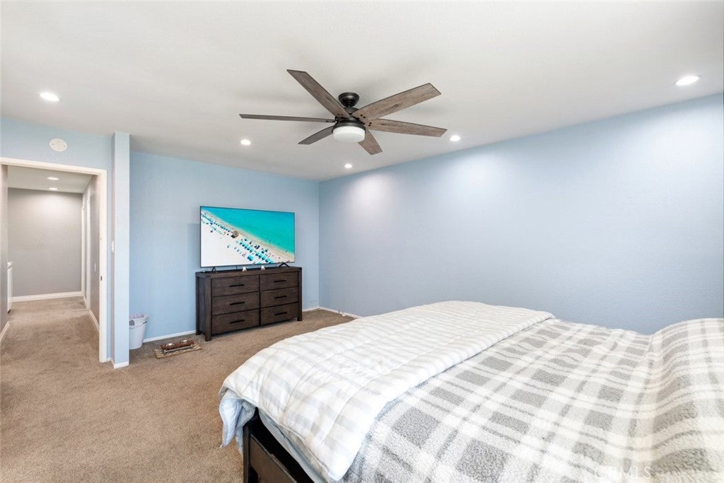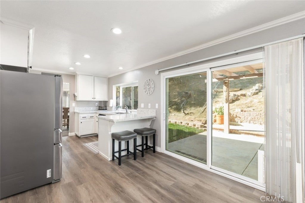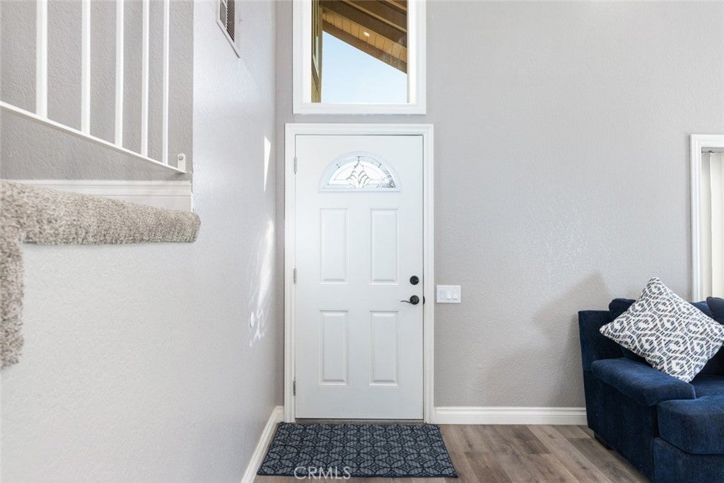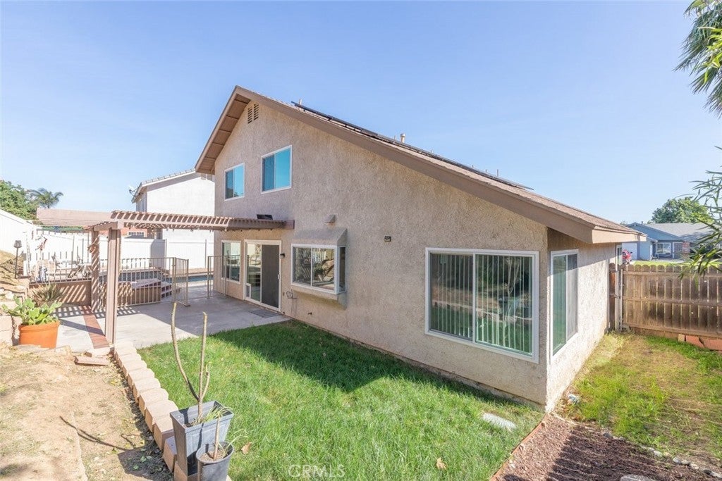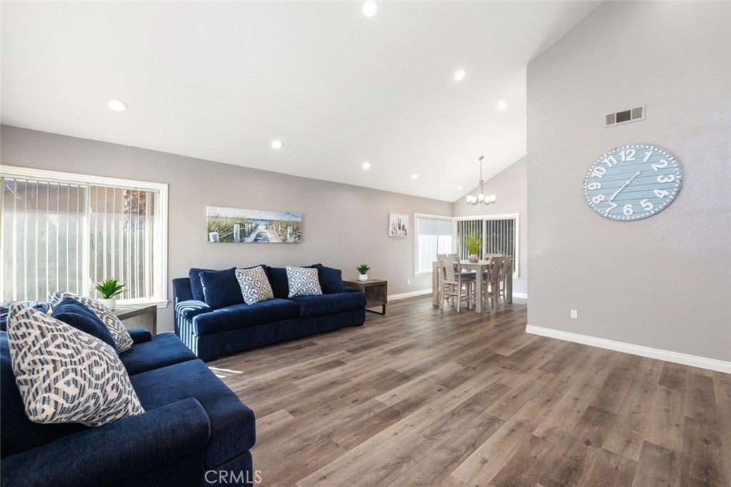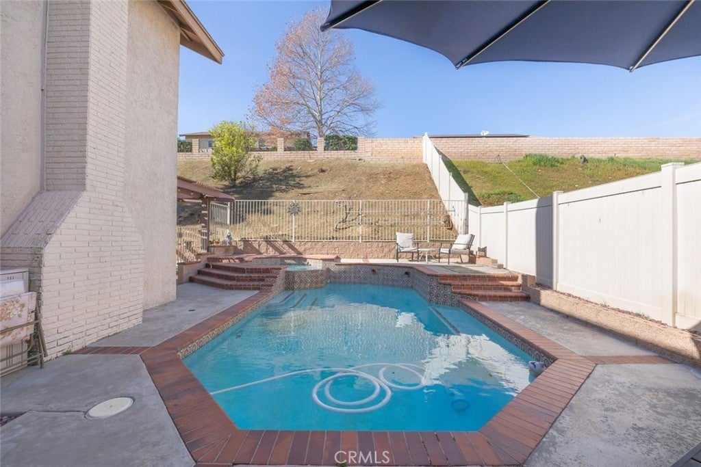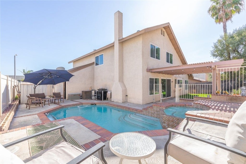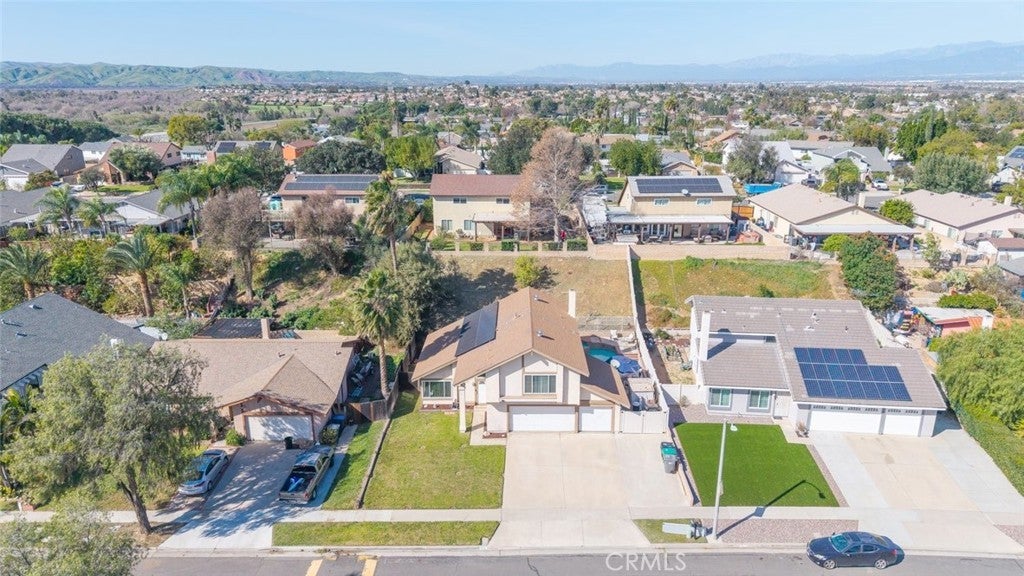Welcome to this beautifully appointed home that makes a striking first impression with soaring vaulted ceilings and an open, light-filled entry. Thoughtfully upgraded throughout, the home features newer luxury vinyl plank flooring, elegant crown molding, and premium Andersen windows that enhance both comfort and efficiency. The heart of the home is the stunning kitchen, showcasing elegant white cabinetry, stainless steel appliances, and sleek quartz countertops. Designed for both everyday living and entertaining, it opens seamlessly to the inviting family room anchored by a cozy fireplace, the perfect gathering space for family and friends. Step into your private backyard retreat, where a spacious concrete deck and covered patio set the stage for outdoor living. Enjoy sunny California days in the sparkling pool, and unwind in the relaxing spa as the evening cools down — truly an entertainer’s paradise. Upstairs, you’ll find four generously sized bedrooms, including a spacious primary suite featuring a charming peek-a-boo view of the surrounding mountains. Additional interior highlights include ceiling fans, window blinds, and recessed LED lighting throughout. Car lovers and hobbyists will appreciate the oversized 3-car garage, offering abundant storage space for vehicles and toys, with potential for RV parking as well. A fantastic home that blends style, comfort, and functionality — don’t miss your opportunity to make it yours.