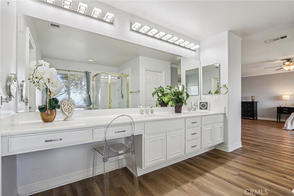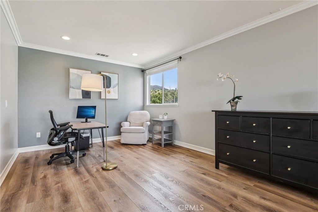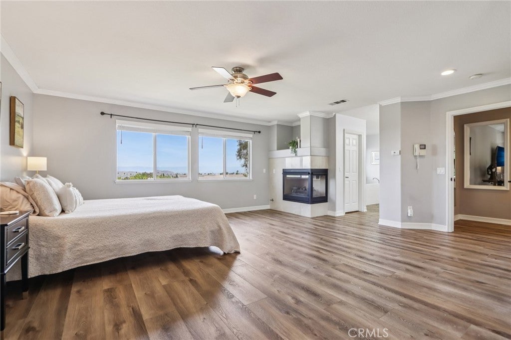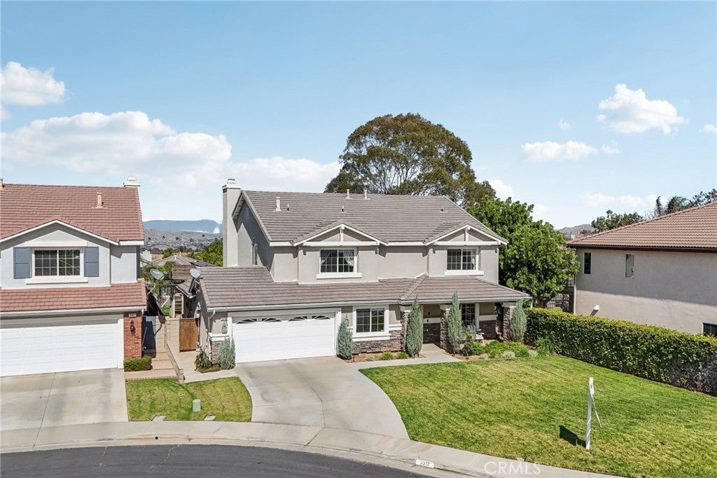 VIEWS | DOWNSTAIRS BEDROOM WITH ATTACHED FULL BATH | UPGRADED AND TURNKEY | Located on a quiet cul-de-sac with scenic mountain views, this turn-key home welcomes you with beautiful curb appeal and an open concept layout. Step inside to a spacious interior featuring upgraded flooring, custom moulding, and canned lighting throughout, creating a bright and polished atmosphere. Formal living and dining rooms offer defined spaces for gatherings and special occasions, while the main living area provides a comfortable setting for everyday living. The beautiful kitchen has been refreshed with upgraded countertops and offers a generous walk-in pantry with ample storage for everyday essentials. The open layout flows seamlessly into the family room, making it ideal for entertaining and staying connected with family and guests. The home offers a convenient downstairs bedroom with a full bathroom, perfect for guests or multi-generational living. Upstairs, the expansive primary suite provides a private retreat complete with a cozy fireplace and a separate sitting area. The primary bathroom features a relaxing Jacuzzi tub, dual vanities, and a spacious walk-in closet with custom built-in cabinetry. Additional guest bedrooms are generously sized, including one with a walk-in closet, and an upstairs linen closet provides convenient central storage. Practical features continue with a dedicated laundry room equipped with a sink, built-in cabinetry, and extra storage to keep everything organized. The three-car tandem garage offers flexible parking and storage options, while newer window blinds throughout the home add a clean, updated touch. Step outside to a backyard designed for enjoyment, featuring a play gym and plenty of space to relax or entertain while taking in the surrounding mountain views. Located in the highly sought-after Eisenhower School District, this home also offers the benefit of a low HOA with community amenities that include a pool and tot lot. Close to freeways, shopping, parks and hiking trails!