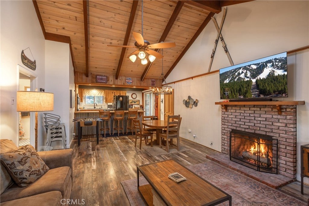 Perfectly positioned between Snow Summit Ski Resort and the Village, and just moments from the National Forest, this exceptional single-story cabin offers the ideal blend of mountain charm, modern upgrades, and unbeatable location. Whether you’re seeking a full-time residence, weekend escape, or investment opportunity, this home delivers comfort and convenience in one of Big Bear’s most desirable settings. Inside, vaulted ceilings create an open and airy feel, enhancing the natural light and warmth throughout the living spaces. The thoughtfully designed layout includes two well-proportioned bedrooms and two bathrooms, offering both functionality and privacy. A dedicated laundry room adds everyday convenience, while the attached one-car garage provides secure parking and additional storage—an invaluable feature in the mountains. The expansive, fully fenced lot offers space to relax, entertain, or enjoy the outdoors, while the rear deck is perfectly suited for evening stargazing and quiet moments under Big Bear’s night sky. Over the years, the home has seen numerous upgrades that add both value and peace of mind, including a new insulated roof, new skylights, new fencing, an expanded driveway, and a new furnace, among many other thoughtful improvements. Surrounded by year-round recreation, close to skiing, hiking, dining, and shopping, this turn-key cabin captures the essence of elevated mountain living—combining location, upgrades, and timeless appeal in one inviting retreat.