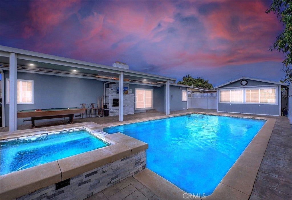 Welcome to your new "Home Sweet Home" right in the HEART of Fullerton, Orange County. On a charming tree-lined neighborhood, arrive at your own extended driveway, offering generous parking for multiple cars. A lovely, large front yard with artificial turf for green-conscious living, your seasonal decor and outdoor enjoyment. A wonderful large deck/porch, for you and guests to sit and chat while. This home features; ample living space, boasting 4 Large Bedrooms, 2 full baths. The Living room is open-concept with the original cozy fireplace. A huge backyard remodel/upgrade featuring a Glorious Full Salt Water Heated Pool and Spa/Jacuzzi, to enjoy all year round. Outdoor built in BBQ/fireplace, Lumawood Patio Cover w/Lights. A Huge advantage of PAID OFF SOLAR +15y warranty and recently Fully Upgraded Copper Plumbing and drain system throughout. Kitchen features granite counter tops, tons of storage and double bar dining space. Recessed lighting, modern yet durable wood tile floors in living room and kitchen. Attached covered Car Port/Workshop and 2 storage sheds. A Laundry room and LARGE 5th Bonus Room can be used for guests/private gym. ALSO INCLUDES A BONUS DETACHED Unit w/private entry, can be used as ADU, guest house or more! The possibilities of this gorgeous home are endless. Situated near; Downtown Fullerton, Cal-State, Disneyland, Knott’s Berry Farm all within 5-10 mins. The Best Beaches in socal just 30 mins, NO HOA! Come see this Gem soon, it simply will not last on market!
