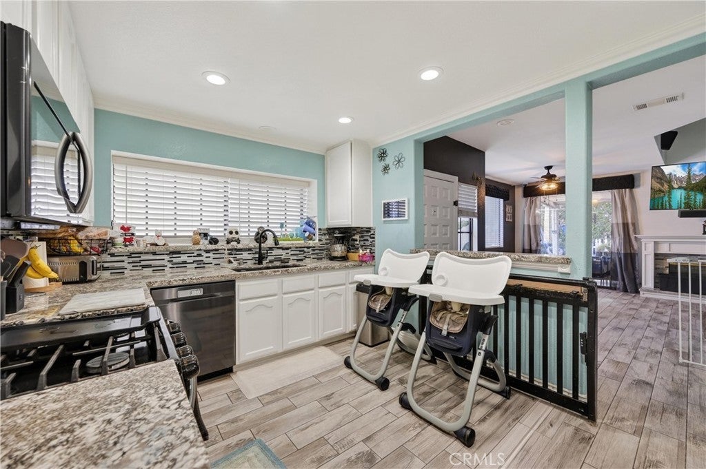 • Interior FeaturesBreakfast Bar, Ceiling Fan(s), Cathedral Ceiling(s), Separate/Formal Dining Room, Eat-in Kitchen, Granite Counters, Open Floorplan, Crown Molding