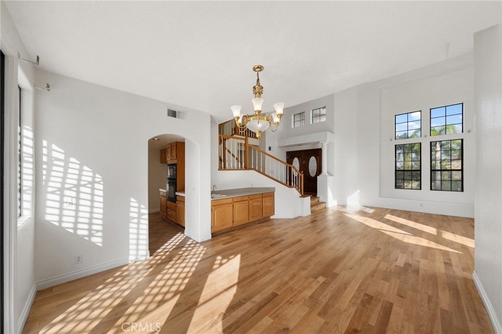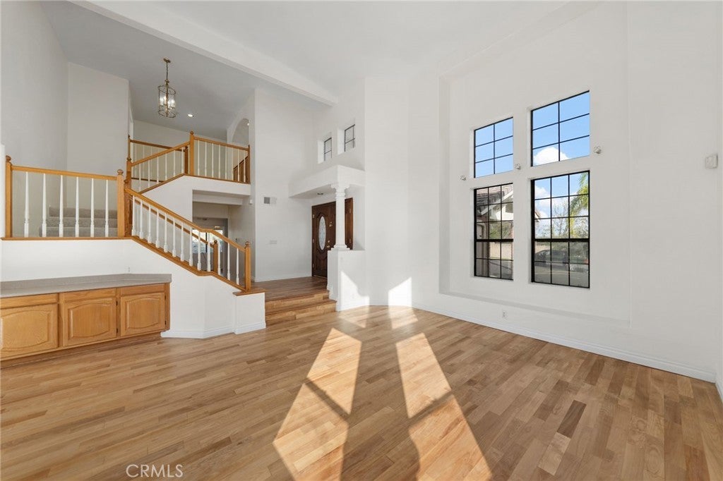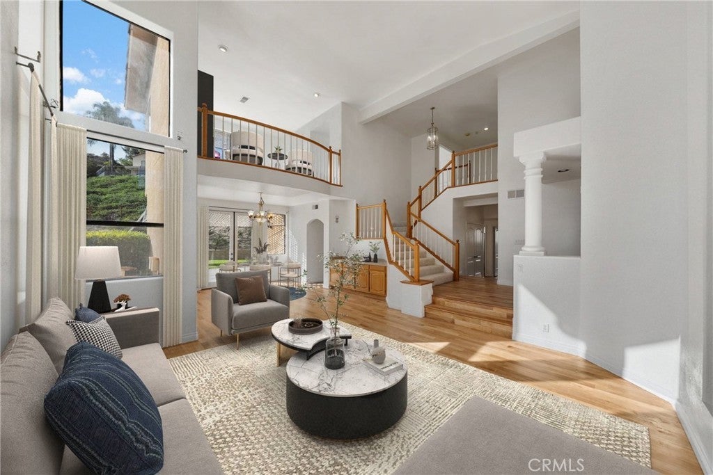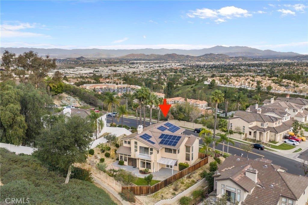 Ideally located on one of the most desirable streets in Sierra Del Oro, this residence offers the rare combination of Orange County proximity, privacy, and mountain views. Nestled in the foothills of the Santa Ana Mountains, the home enjoys a premium setting with no homes across the street or behind, creating a peaceful and open backdrop not easy to find so close to Orange County. The home is truly move-in ready, featuring fresh interior paint, new plush carpeting upstairs, and beautifully re-stained wood floors throughout the main level. An almost new, fully paid-off 24-panel solar system provides substantial long-term energy savings. From the moment you enter through the double doors, you’re greeted by a raised foyer and soaring ceilings that set an elegant tone. The formal living and dining rooms showcase dramatic two-story ceilings and expansive floor-to-ceiling windows that flood the space with natural light and bring the outdoors in. The oversized kitchen is designed for both everyday living and entertaining, offering a large center island, generous breakfast bar seating, a built-in desk, and a spacious walk-in pantry. It opens seamlessly to the large family room, which features stacked windows, a gas fireplace, a built-in entertainment center, and sliding doors that lead directly to the backyard—perfect for indoor-outdoor gatherings. A downstairs bedroom with a full bathroom provides flexibility for guests, multi-generational living, or a home office. Upstairs, the primary suite is a true retreat with voluminous ceilings, a dual-sided fireplace, stacked windows, and a sliding door that opens to a private balcony where you can bask in tranquil mountain views. The suite also includes a loft retreat area, an upgraded en-suite bath with a separate tub and shower, and a spacious walk-in closet. An additional bedroom is currently styled as a bonus room and captures city-light views. Situated on an approximately 10,000-square-foot lot, the backyard offers endless possibilities, including space for a swimming pool and potential RV parking, while maintaining peaceful mountain views and privacy with no immediate rear neighbors. Additional highlights include a three-car garage with direct access and built-in cabinetry, a downstairs laundry room with a laundry chute, vinyl fencing, and the added benefit of no HOA and no Mello-Roos. This home has the ideal setting for buyers seeking both convenience and a premium Sierra Del Oro lifestyle.