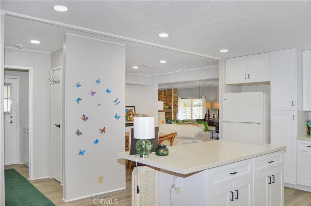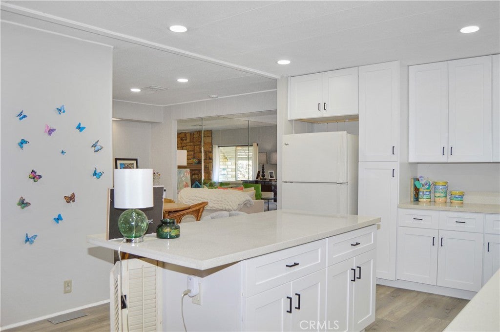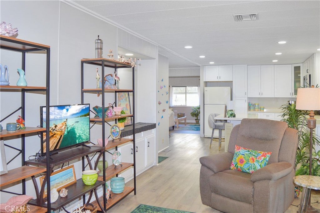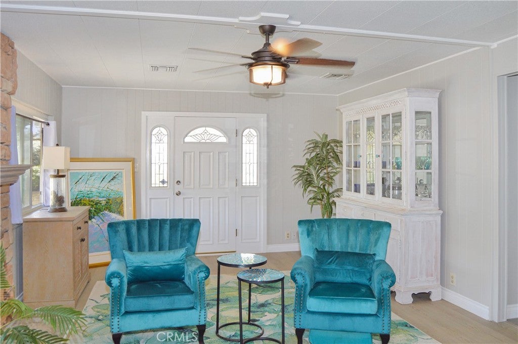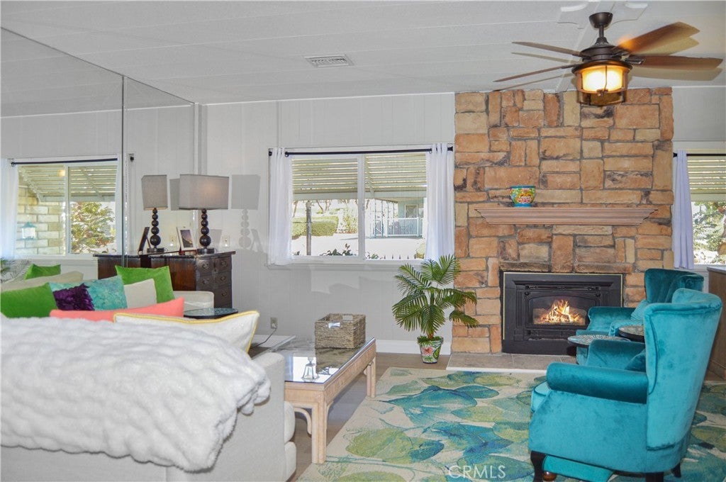 Wow! Nearly $25,000 Price Reduction! Welcome Home to 10203 Overland Trail in Cherry Valley's Popular 55+ Golf Community of Highland Springs Village! If you're ready to enjoy an active 55+ lifestyle in the beautiful Highland Springs Village Community where you OWN your own LAND, then this inviting home rehabbed in 2025 with abundant space inside & out is perfect for you! What's special about this home aside from the rehab? Due to the spacious corner lot and the positioning of the home, you aren't lined up in a row of mobiles like so many others in this community are - it feels much more like a "traditional home." As you enter the spacious living room from the expansive screened porch (an awesome spot to enjoy views of the flowering front yard and local hills), you’ll love the attractive flooring & rock fireplace accentuated by the designer-perfect custom decor. The gorgeous kitchen with white Shaker-style cabinetry, quartz countertops, a breakfast bar, stainless steel & black appliances, an included fridge which matches the countertops, & recessed lighting is open to both the dining room and family room for a great flow. A window-filled bonus room right off of the family room offers even more living space to enjoy (the wicker sofa & chairs are included). The main bedroom suite offers a glass barn door entry, 3 closets (wow!), & an en suite bath with easy-access shower. The 2nd bedroom also has its own bath with a newer vanity & a custom, tiled shower. The laundry room comes with washer & dryer included, a handy sink, & ample storage. Nearly all of the windows have been replaced with energy-efficient dual-paned glass. Yes, there’s newer central heat & air, too. A handy storage shed is located under the covered carport. Outside, there are inviting pathways from which to enjoy the views and your flower-filled yard plus two more small, covered patios. Highland Springs Village offers many amenities including: golf on the private golf course, a sparkling pool, spa, tennis and pickleball courts, lakes, & a clubhouse with lots of activities. Low HOA dues of $182/month. Check out the virtual tours, then call or text your favorite agent today to make it yours! You deserve this!