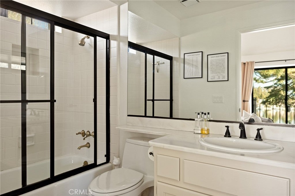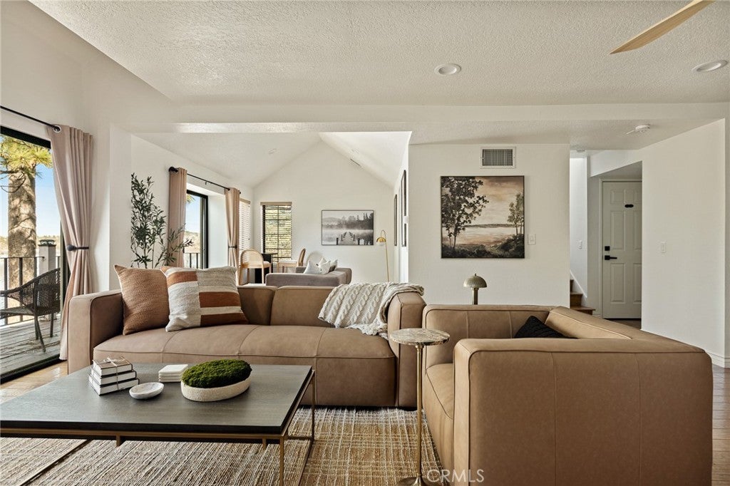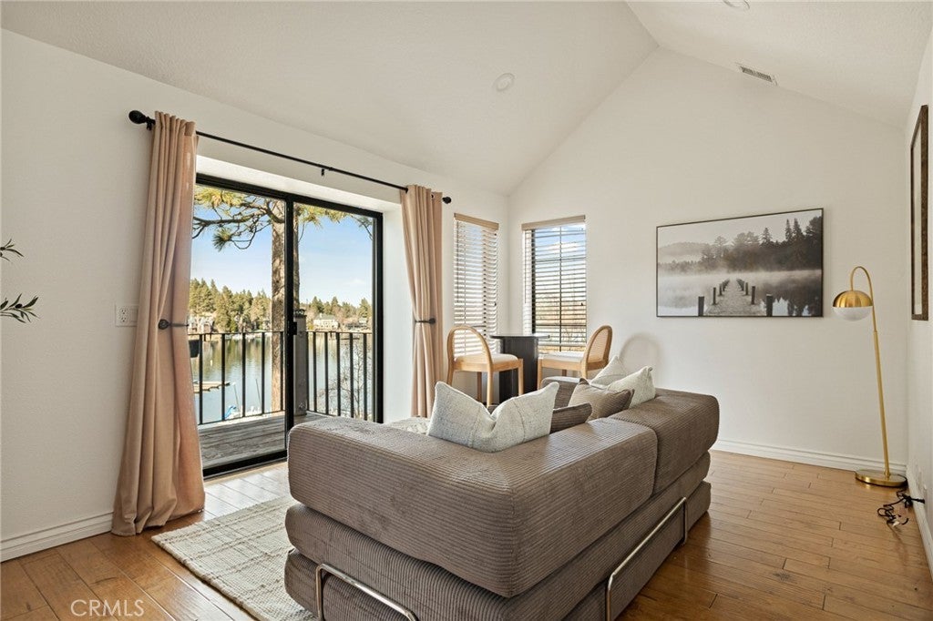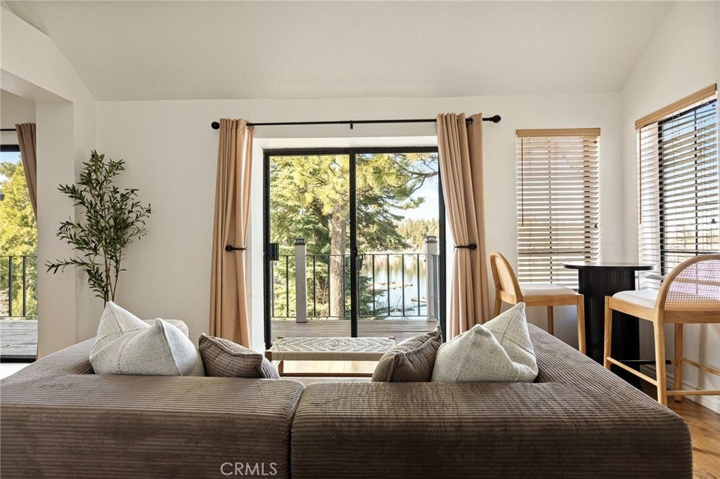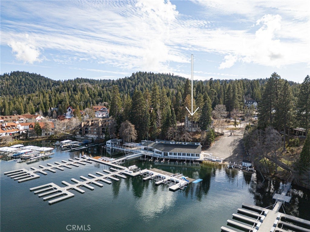 Experience refined lake living in the absolute heart of Lake Arrowhead Village, where the best restaurants, boutique shopping, lakeside concerts, coffee shops, wine bars, and seasonal events are just steps from your front door. This beautifully positioned waterfront condo offers the rare opportunity to live in the middle of it all while enjoying peaceful marina and water views from your own private balcony. Originally designed as a 3-bedroom residence, the home has been thoughtfully reimagined into a spacious 2-bedroom layout to create an expansive open-concept flex space currently used as a secondary lounge with a sleeper sofa, perfectly oriented toward the lake. The design enhances the natural light and sense of openness, while still offering the flexibility to easily convert the space back into a true third bedroom if desired. The main living area blends warmth and sophistication with wood flooring, a striking stacked stone fireplace, and large sliding glass doors that frame the water and open to a private balcony overlooking Village Bay. Morning coffee feels elevated above the trees, and evenings are best spent with a glass of wine while watching boats glide into the marina below. The kitchen flows seamlessly into the dining and living spaces, making it ideal for entertaining after a day on the water or dinner in the Village just a short stroll away. Both bedrooms are generously sized and designed for comfort and privacy, while the primary suite enjoys tranquil tree-top views. Covered garage parking and in-unit laundry add convenience, allowing you to park and truly embrace a walkable lifestyle. For those who want the full lake experience, a half of a double dock in Village Bay is available for additional purchase. Enjoy the ease of walking down to your boat in minutes or driving up for effortless loading and unloading. Spend your days cruising the lake, tying up at waterfront restaurants, and returning home just steps from the Village energy. The ability to combine Village walkability with dedicated dock ownership is a rare and highly sought-after lifestyle opportunity. Whether you are seeking a luxurious weekend escape, full-time residence, or investment property in one of Lake Arrowhead’s most dynamic waterfront locations, this condo delivers location, flexibility, and elevated lake living — all in the center of the action. Lake Arrowhead Village living at its finest.