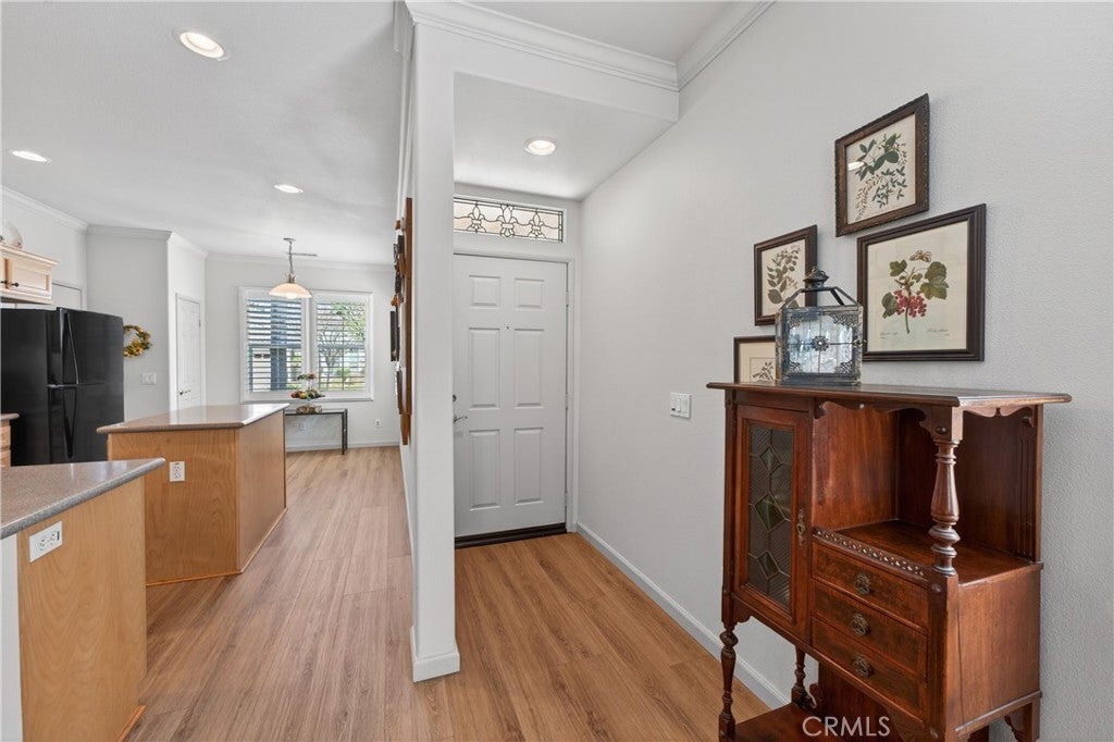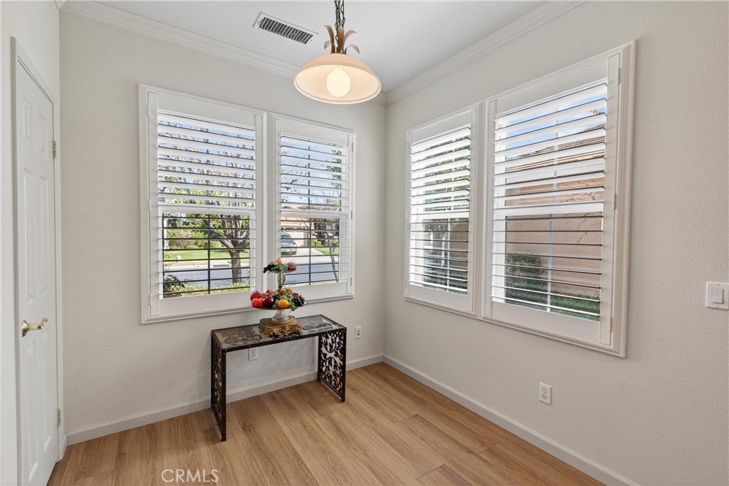 Your next chapter begins at Trilogy at Glen Ivy — Southern California’s premier 55+ resort community. Discover the exceptional lifestyle offered at Trilogy at Glen Ivy, the Inland Empire’s premier gated active-adult community. Private and beautifully maintained, this exclusive neighborhood is ideally situated against the scenic foothills of the Cleveland National Forest and surrounded by the lush fairways of the Glen Ivy Golf Club, offering a tranquil yet vibrant setting. This charming Pummelo Model is known for its distinctive English cottage appeal and thoughtful design. It is the only floor plan in the community featuring a kitchen nook positioned at the front of the home, creating a bright and cheerful space to start your day. Upon entering, you’re welcomed by an open and functional layout filled with natural light, soaring ceilings, crown molding, and elegant plantation shutters. The inviting family room showcases a custom built-in entertainment center with bookcases and a beautifully crafted fireplace mantel — perfect for cozy evenings or hosting friends. The kitchen is both stylish and practical, featuring a center island, stunning backsplash, and direct access from the two-car garage for everyday convenience. The spacious primary suite is designed for comfort, offering a generous walk-in closet, dual sinks, and a walk-in shower. Outdoors, enjoy a covered patio and fully fenced backyard that provides exceptional privacy — an ideal retreat for morning coffee or relaxing afternoon tea. Residents of Trilogy enjoy world-class amenities designed to support an active and social lifestyle: Indoor and outdoor pools, spa, cabanas, fireplaces, and BBQ areas, state-of-the-art fitness center with indoor walking track, lodge and grand ballroom, cards and billiards rooms, craft studios for ceramics and painting, social events, dances, and community dinners, bocce ball, tennis, and pickleball courts, the Lake Center with ballroom, meeting rooms, library, and HOA office, and large outdoor amphitheater for summer concerts under the stars. This is just steps away from the renowned Glen Ivy Hot Springs, a historic Southern California destination known for its mineral baths and spa experiences. The community is also conveniently located near shopping and dining options. This is more than a home — it’s a lifestyle. Experience the relaxed yet engaging atmosphere that makes Trilogy at Glen Ivy one of the most sought-after 55+ communities in the region.