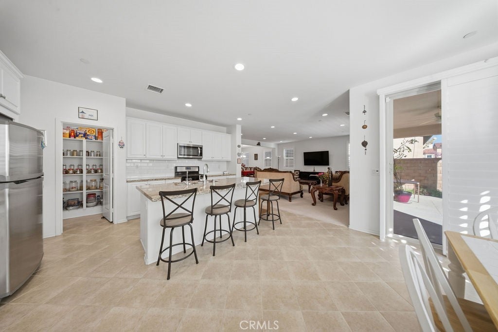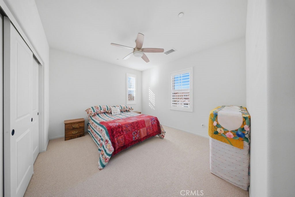 PRICE IMPROVEMENT!! Nestled within the highly sought-after New Haven Master Plan Community of Ontario Ranch, this beautifully maintained home offers the perfect blend of comfort, style, and functionality. Featuring four spacious bedrooms and three full bathrooms, including a convenient main-level bedroom and bathroom, this bright and airy residence is filled with natural light and enhanced by recessed lighting throughout. The open-concept layout showcases a large kitchen with custom cabinetry, subway tile backsplash, and a walk-in pantry, making it ideal for both everyday living and entertaining. New carpet throughout adds a fresh, modern touch, while the thoughtfully designed floor plan flows seamlessly from room to room. Upstairs, the expansive primary suite serves as a true retreat, complete with a luxurious en-suite bathroom featuring dual sinks, a separate soaking tub and shower, and a generous walk-in closet. Step outside to enjoy a finished backyard with a covered patio and ceiling fan, perfect for relaxing or hosting gatherings. Additional highlights include an epoxy-coated garage floor and well-maintained finishes throughout. Residents of New Haven enjoy resort-style amenities including five sparkling pools, multiple parks, a splash pad, dog park (Paws Park), pickleball and basketball courts, four clubhouses, fire pits, outdoor BBQ areas, and outdoor fitness spaces. Conveniently located near Costco, 99 Ranch Market, Stater Bros, Sprouts, shopping, dining, and major freeways, this home offers exceptional lifestyle and accessibility. This is Ontario Ranch living at its best—comfort, community, and convenience all in one.