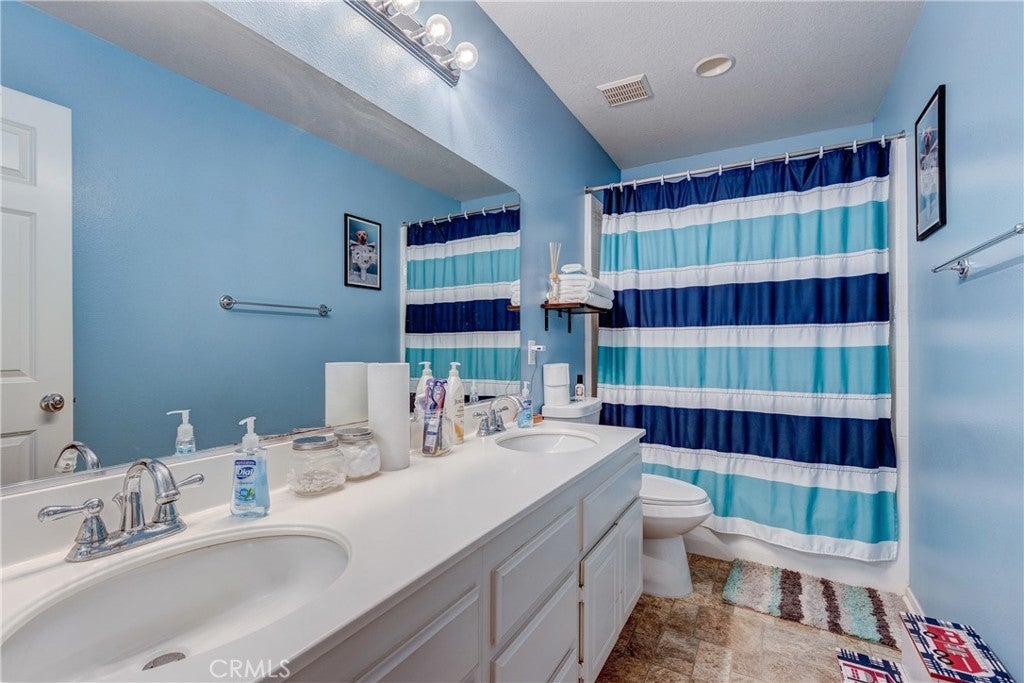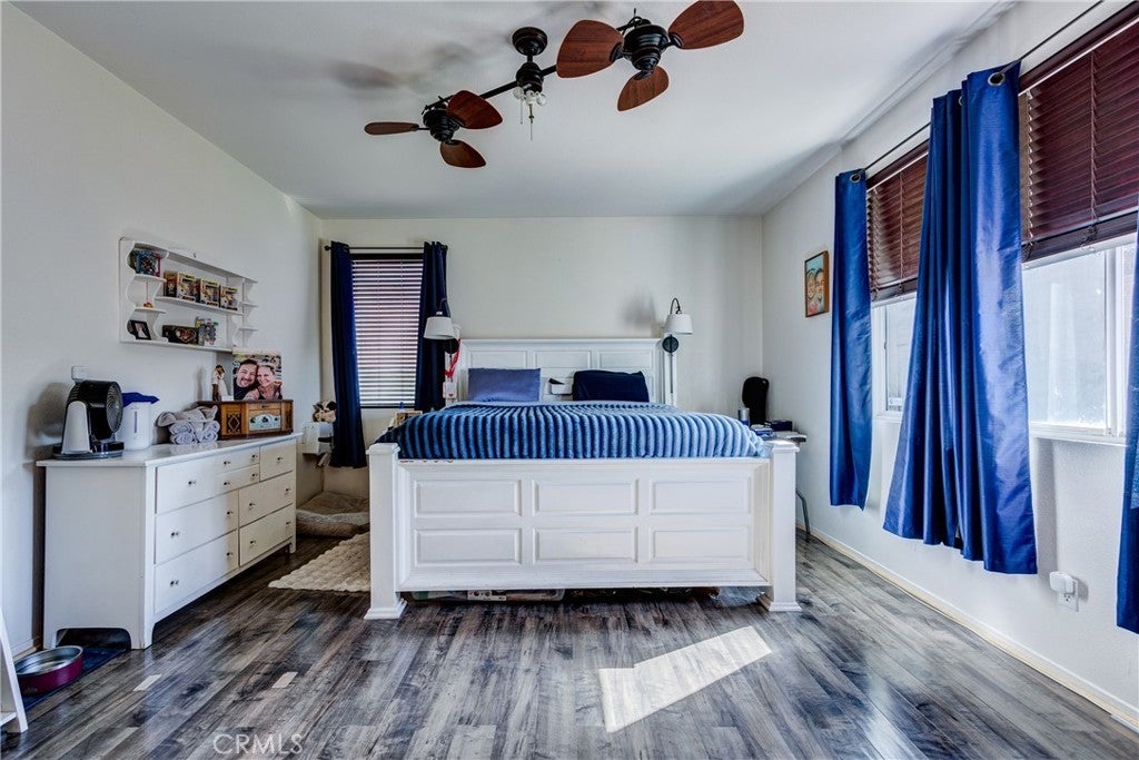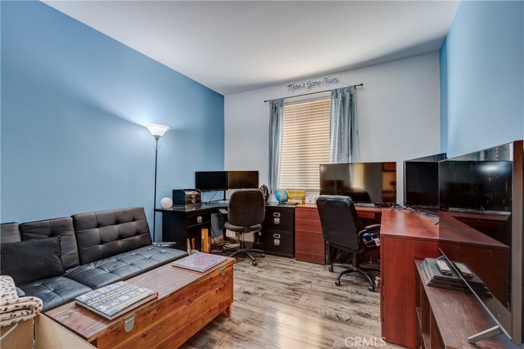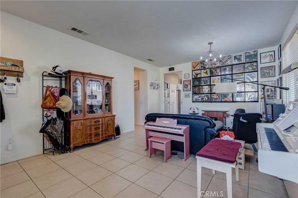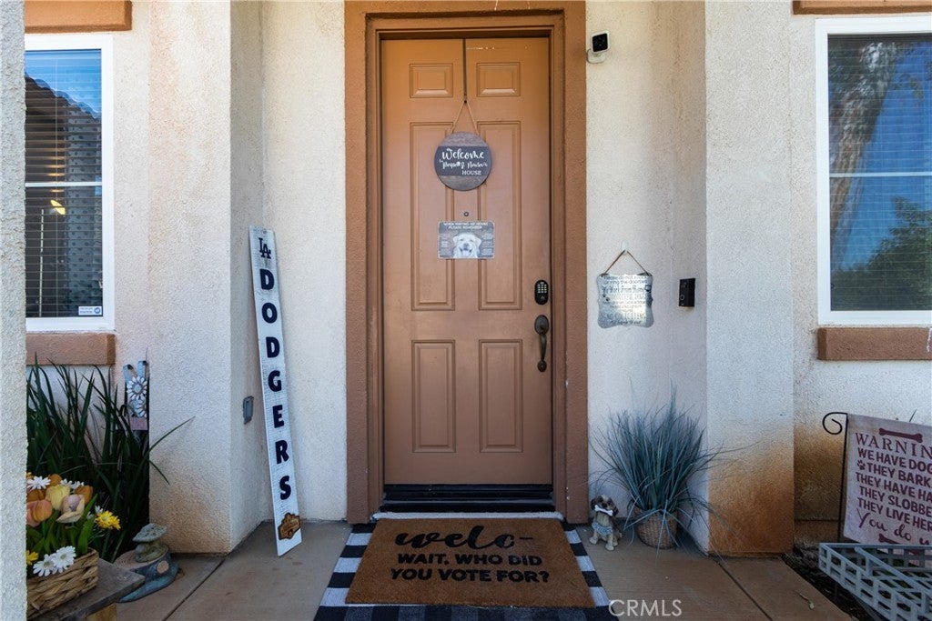 Large 4 bedroom single-story home in Menifee offering almost 2,000 sq ft of beautifully updated living space and enjoys a desirable private yard with picturesque views. The spacious layout featuring tall 9 foot ceilings & recessed lighting seamlessly connects the large living and kitchen areas. Enjoy the modern aesthetic and easy maintenance of LVP plank flooring in bedrooms and stylish tile throughout the home. The well-appointed kitchen features desirable upgrades including granite countertops, a large island, stainless steel appliances, and ample cabinetry for storage. A large primary bedroom provides a tranquil retreat featuring a private en-suite bathroom and very generous walk in closet space. Three additional spacious bedrooms offer versatility for a growing family, guests, or a home office. Step outside to a private backyard oasis, perfect for relaxation and entertaining. The yard features a combination of concrete for entertaining areas, lush grass, and open orientation, creating a serene and functional space. Enjoy total privacy & the beauty of your surroundings with stunning views of the mountains from your private backyard with no home behind! All this and close to parks, excellent schools, Menifee Global Hospital, restaurants & the 215 freeway for easy access to surrounding communities including San Diego beaches & local mountains.