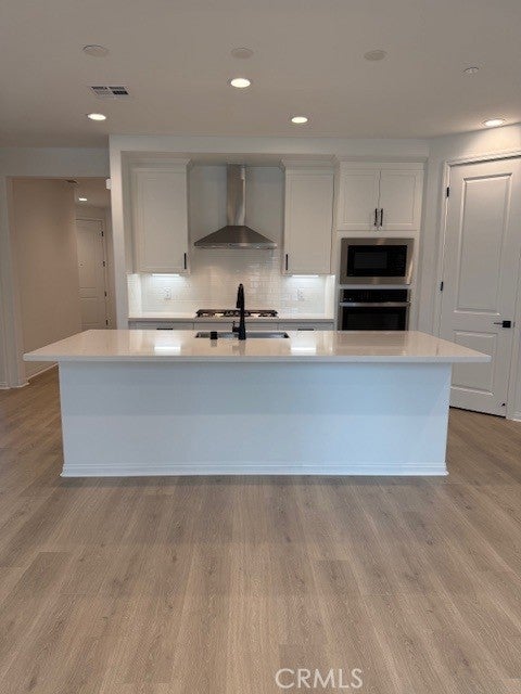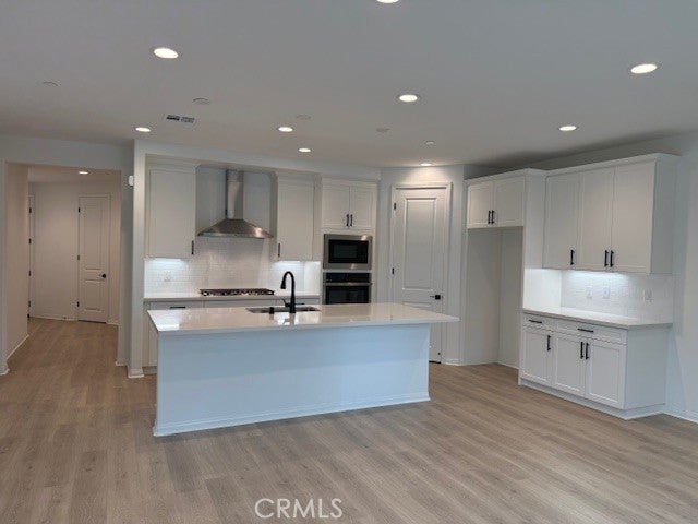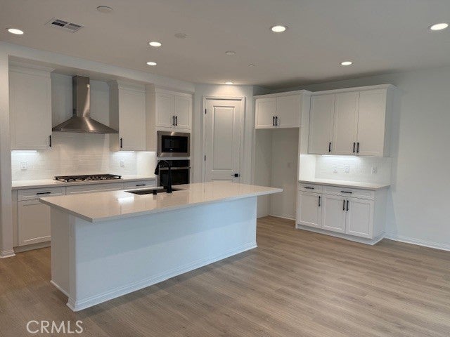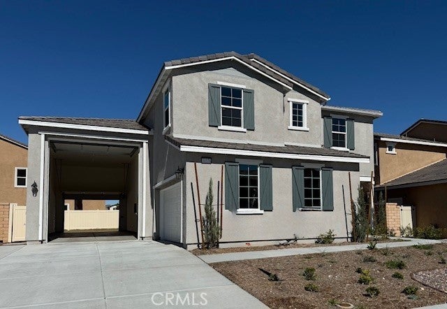 Last opportunity at Legacy in the Braverde masterplan in Menifee. This home is our popular Pearce plan, whose claim to fame is the attached finished RV garage ( 38 ft long, 20 ft. ceiling height) + rear 8ft. RV garage door with access to the backyard, in addition, there is a 2 car garage attached. Endless possibilities, RV, extra storage, a home gym, long truck, van, trailer, boat, the list is endless!! This 4 bed/3 bath + LOFT home is filled with high end appointments such as; charming front porch, White cabinetry throughout, matte black hardware, quartz countertops in kitchen + full tile backsplash w/under cabinet lighting, GE stainless steel appliances including a vent hood, microwave, 5-burner GAS cooktop and dishwasher. Flooring includes wood laminate on the main level, 12 x 24 tiles in all bathrooms & laundry, plus upgraded carpet in hallways, stairs, bedrooms & tons of recessed lighting. This home is complete & move-in ready!
