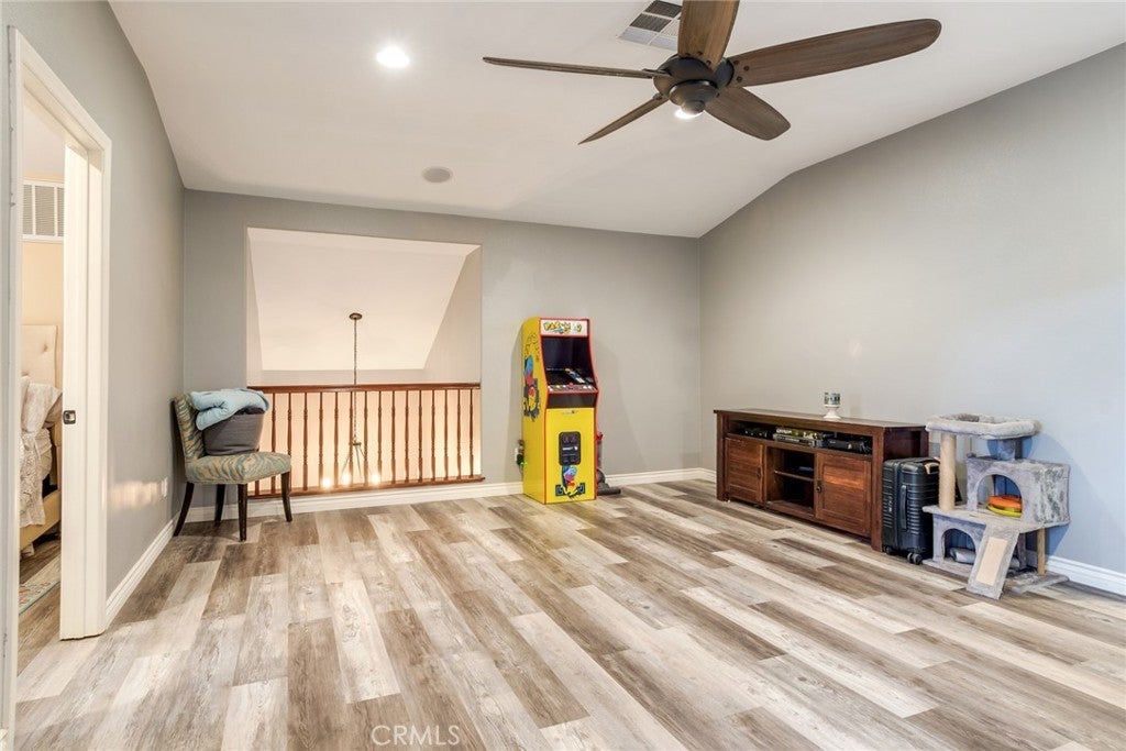 Tucked Away at the End of a Quiet Cul-De-Sac in the Desirable Sycamore Creek Community, this Delightful 4 Bedroom, 3 Full Bath Home Offers 2,759 Square Feet of Well Designed Living Space that has a Unique Layout and Inviting Flow. As you Enter, You are Welcomed by a Downstairs Guest Bedroom with a Full Bathroom, Ideal for Guests or Multigenerational Living. Nearby is the Laundry Room with a Utility Sink and Storage. The Open Sitting/Living Space with an Adjacent Dining Area, Perfect for Everyday Living and Entertaining. Down the Hall, Generous Storage and Closet Space Lead to the Primary Bedroom, Situated on the Main Level with Views of the Backyard. The En Suite Bathroom Includes Dual Sinks, A Soaking Tub, a Separate Shower, Privacy Toilet and a Spacious Walk In Closet, Creating a Private Retreat. At the Back of the Home, the Open-Concept Kitchen and Family Layout are the Heart of the Home and Open to the Backyard Pool Area. The Kitchen Features Double Ovens, a Gas Cooktop, Microwave, Dishwasher, a Large Island with Seating and an Abundance of Cabinetry, along with Room for a Casual Dining Table. The Kitchen Opens Seamlessly to the Family Area, which Offers a Built In Media Cabinet, Fireplace and Vaulted Ceiling. Upstairs, a Spacious Loft Overlooks the Main Living Areas Below, Providing Flexible Use as a Media Room, Office or Secondary Living Space. Two Additional Bedrooms are Located on Opposite Sides of the Loft. A Full Bathroom with Tub/Shower Combination and Linen Storage Completes the Upper Level. The Double Doors from the Kitchen Lead to the Backyard Oasis Highlighted by A Beautiful Pool and Cabana, Great for Outdoor Relaxing/Entertaining. The Home Comes with a 3 Car Tandem Garage with Overhead Storage. Solar was Installed in 2022, with the Buyer to Assume the Existing Solar Lease. Enjoy a Low HOA, Close Proximity to the Sycamore Creek Clubhouse and Amenities, Easy Access to the 15 Freeway and Nearby Shopping. This Home is a Must See!