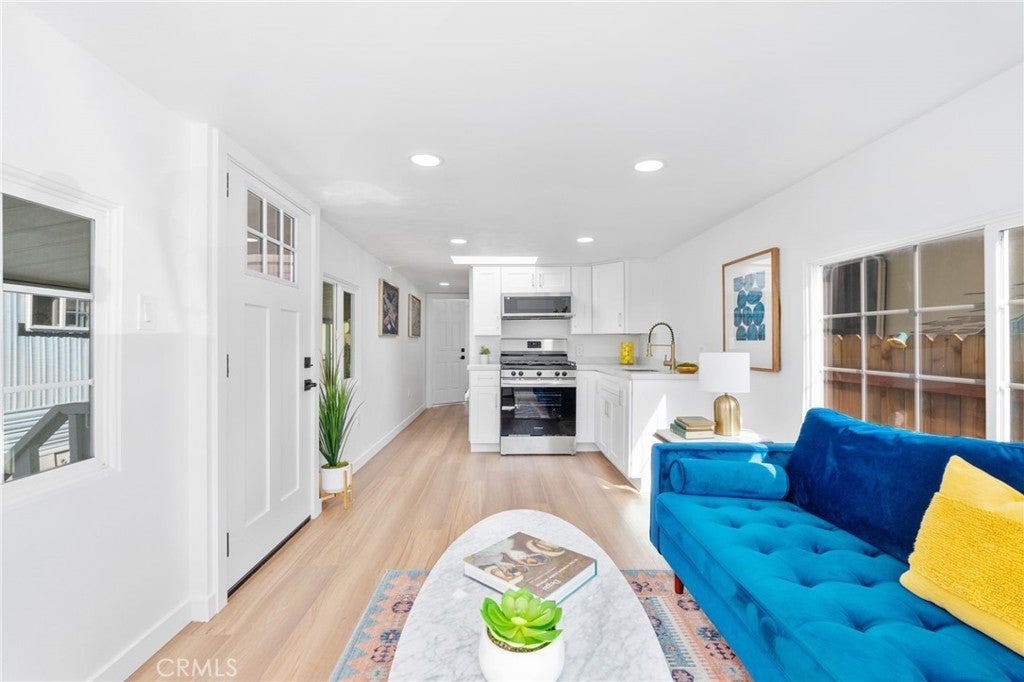 FINANCING AVAILABLE – Discover this beautifully renovated 1-bedroom, 1-bathroom manufactured home located in a quiet, well-maintained all-age park. This move-in ready home features modern upgrades throughout, including new flooring, updated kitchen cabinetry, and a fully remodeled bathroom, offering a clean and stylish living space. The bright, open layout creates a warm and inviting atmosphere, ideal for everyday comfort. Outside, enjoy a covered patio, a private yard space to make your own, and direct access to an additional back parking lot—perfect for extra convenience. The community is pet-friendly, allowing up to two pets under 35lbs and is ideally located near shopping, dining, and the 210 freeway. Don’t miss out on this fully updated gem in a welcoming all-age community!