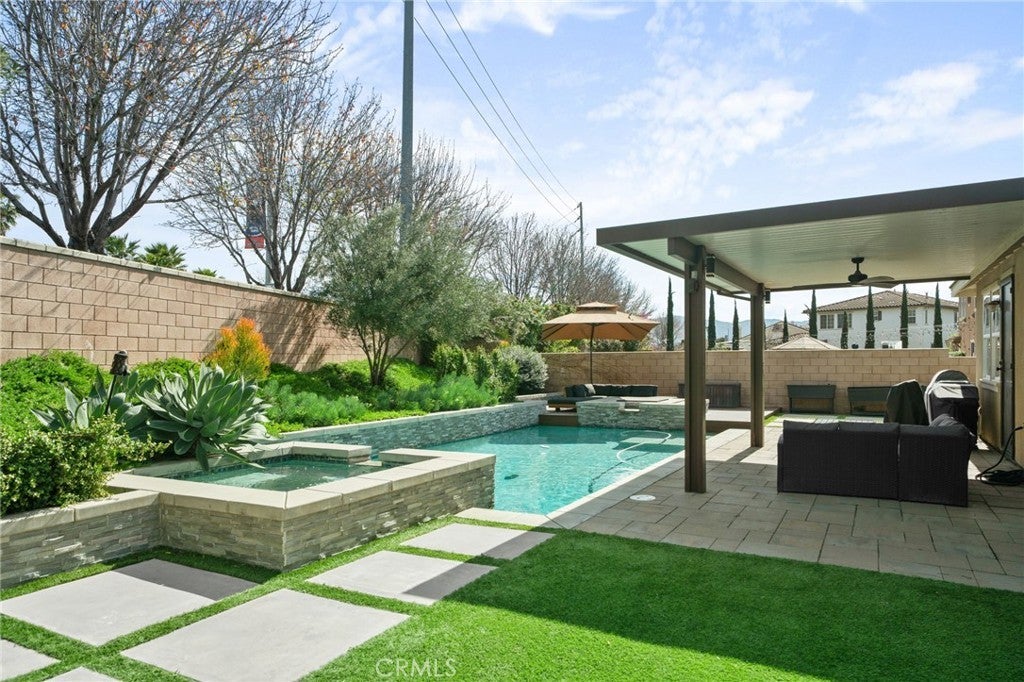 Welcome to your Eastvale oasis—an exceptional single-story pool home with paid-off solar! Nestled in the heart of one of the area's most sought-after neighborhoods, this beautifully maintained residence offers the perfect blend of comfort, elegance, and resort-style living. From the moment you arrive, the stunning curb appeal sets the stage for what’s inside. Step through the front door into a bright and spacious open floor plan, where rich vinyl flooring flows through the main living areas. The inviting family room, anchored by a cozy fireplace, is ideal for gatherings or quiet evenings in. The chef-inspired kitchen is a showstopper, complete with gleaming granite countertops, stainless steel appliances, and abundant cabinet space. Whether entertaining or enjoying a quiet meal, this space is designed to impress. The expansive primary suite is your private retreat, offering direct access to the backyard sanctuary. Enjoy a custom closet system and a spa-like atmosphere that continues outdoors. Designed for relaxation and entertainment alike, the backyard boasts low-maintenance turf, a dog run, vibrant garden beds, and a sparkling pool and spa with cascading waterfalls—all framed by lush, mature landscaping. This thoughtfully designed home includes ceiling fans throughout and comfortably carpeted secondary bedrooms. And best of all—this home features PAID-OFF SOLAR, offering energy efficiency and savings from day one. Pride of ownership shines through every corner of this move-in-ready gem. Don’t miss your chance to own this rare single-story Eastvale retreat. Schedule your private showing today!