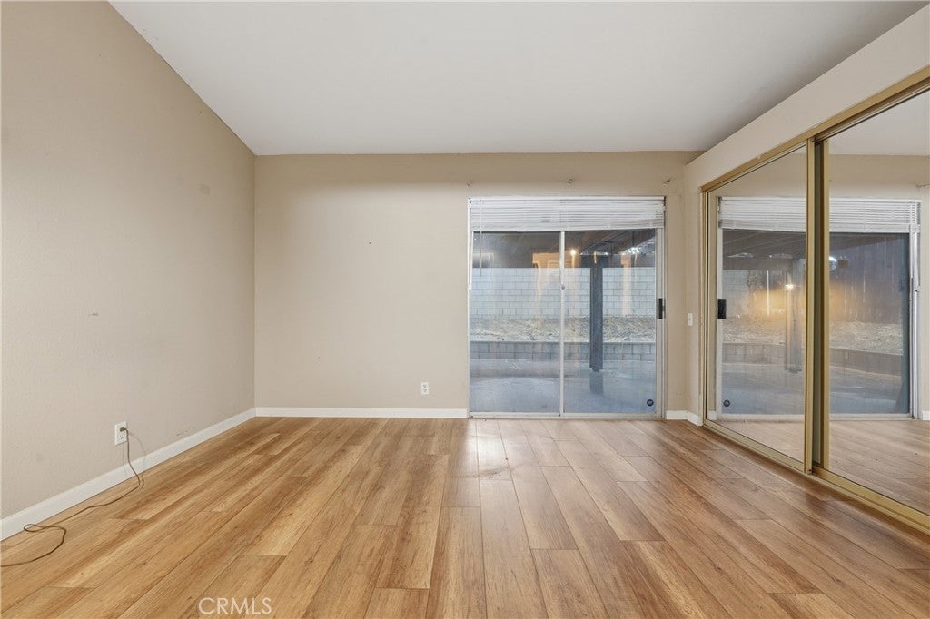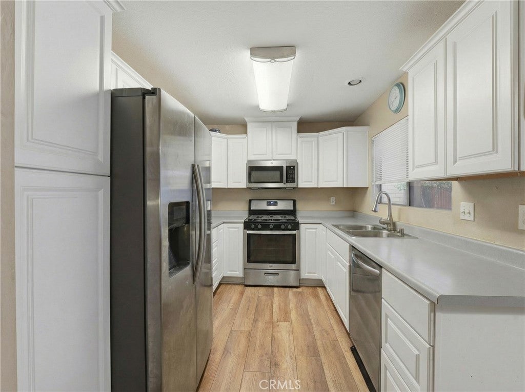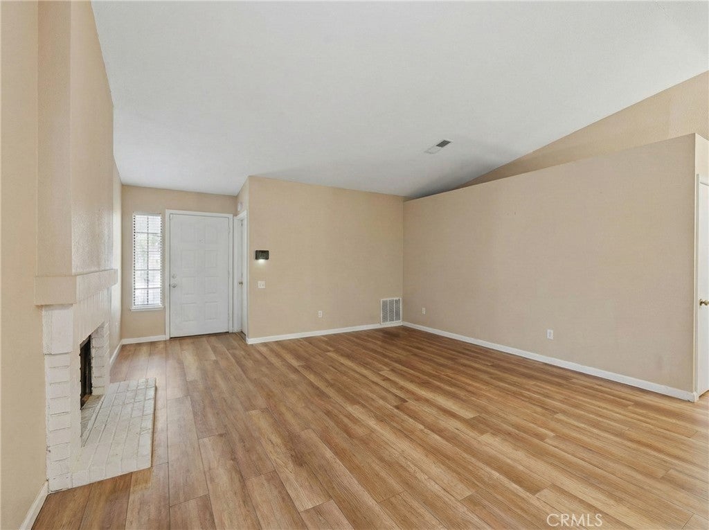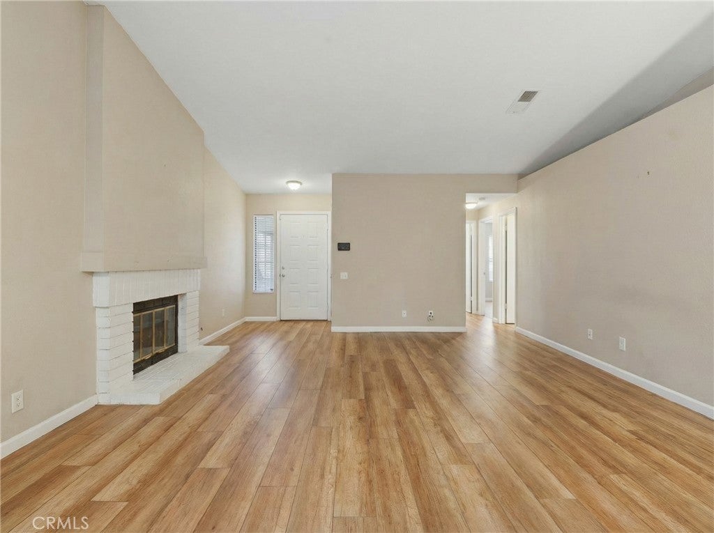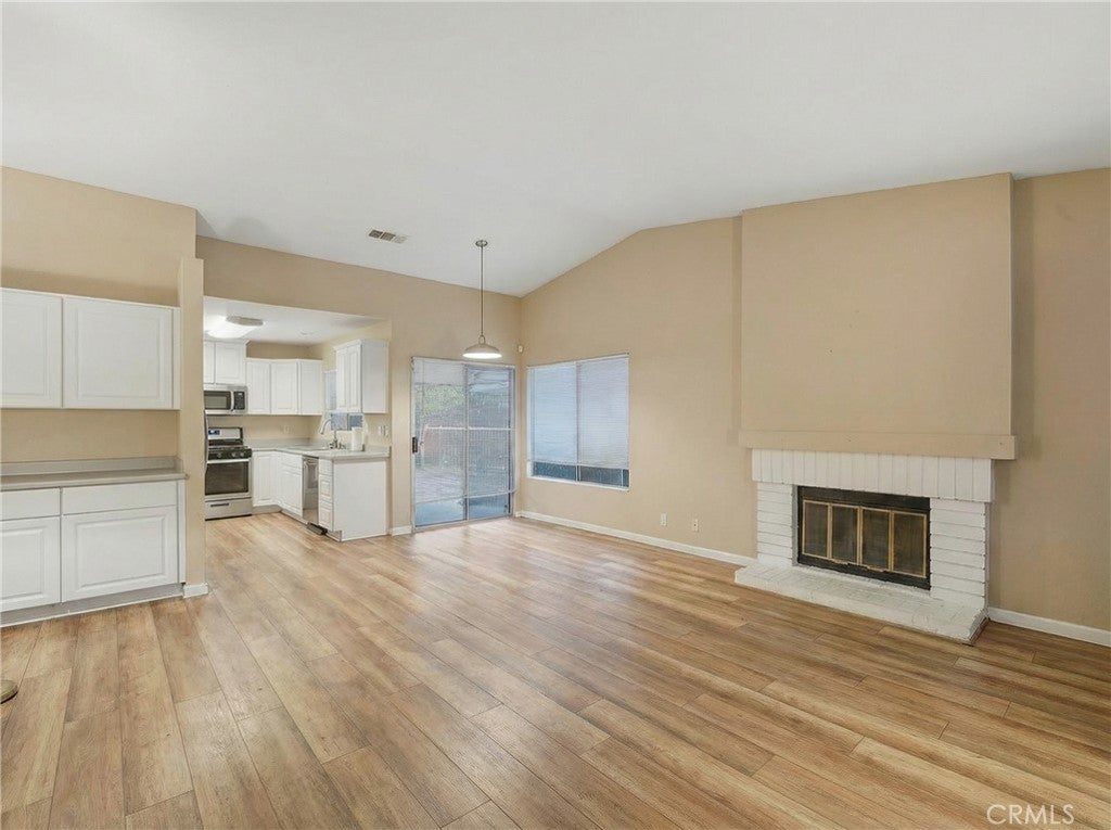 Beautifully updated 2-bedroom, 2-bath home nestled within the Northgate community of Fontana. Offering 958 square feet of thoughtfully designed living space, this residence blends comfort and style with laminate wood flooring, crisp white countertops, stainless steel appliances, and soaring ceilings that enhance the light-filled, open feel. A cozy fireplace anchors the living area, while sliding glass doors from both the living room and one of the bedrooms create seamless indoor-outdoor flow to a private entertainer’s backyard perfect for relaxing or hosting. Both bedrooms feature en-suite bathrooms, providing rare dual-primary living and added privacy. Meticulously maintained and move-in ready, this home offers charm, functionality, and convenience in a well-established neighborhood close to parks, shopping, and commuter access.