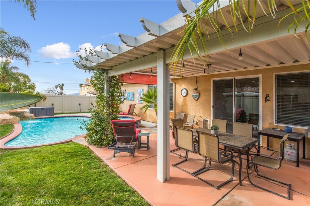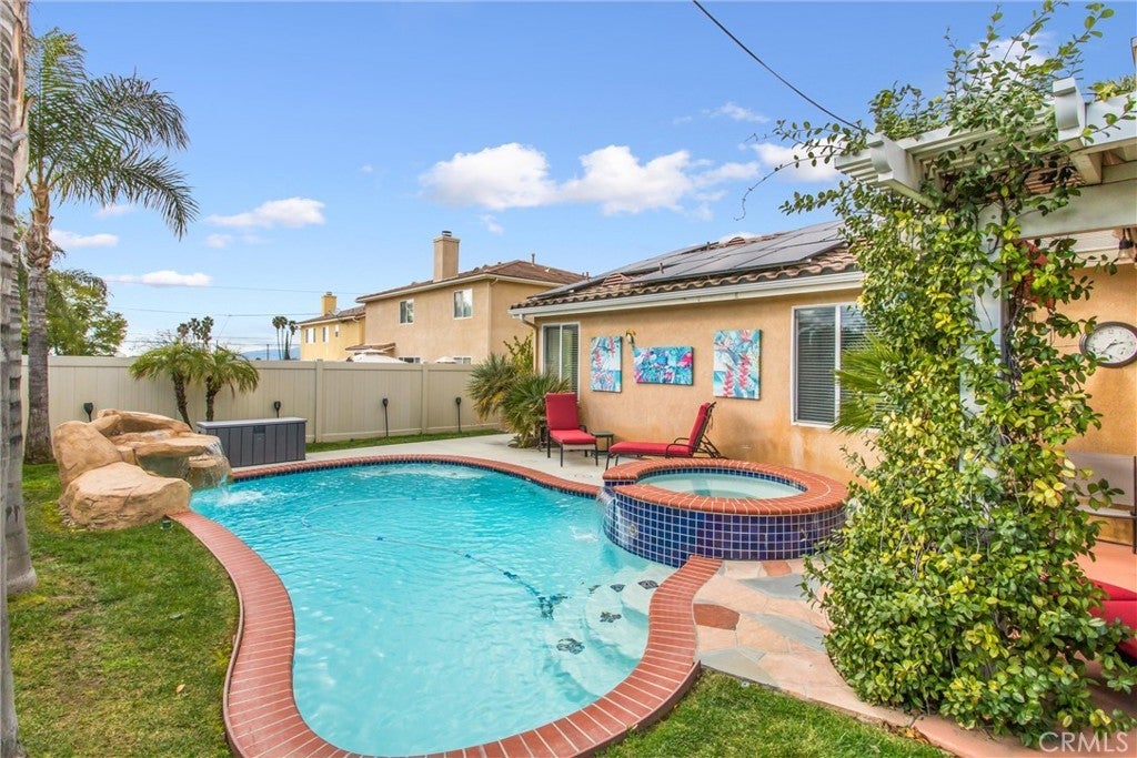There comes a time when home should feel easy, comfortable, and beautiful. A place designed not for upkeep, but for enjoyment. This thoughtfully upgraded single-story home offers the simplicity so many are searching for, with 3 bedrooms plus a private office (or optional 4th bedroom) — perfect for visiting family, hobbies, or a quiet retreat of your own. Wide, open living spaces are grounded by large tile flooring for effortless maintenance, while warm laminate floors in the bedrooms add comfort without the worry of carpet. The heart of the home is the great room featuring a kitchen that opens naturally to the family room with a welcoming sit-up bar, the kind of space where conversations linger over coffee or a glass of wine. Freshly painted cabinetry and included appliances make the transition seamless and uncomplicated. The primary suite offers dual walk-in closets, separate sinks, a soaking tub, and a spacious walk-in shower. A space designed for comfort, privacy, and ease. Step outside and you’ll understand what makes this home truly special. The saltwater pool and spa create a gentle, low-maintenance way to relax year-round. With Pentair wireless controls accessible from your phone, everything is simple - adjust the temperature or lighting without ever leaving your chair. Lush landscaping, a peaceful water feature, a covered patio with stained concrete, bistro lights bordered by privacy walls, TIKI torches and outside art feels more like a vacation than a backyard. The charming brick courtyard offer another space to sit quietly and take in the mountain views — whether it’s morning coffee or sunset reflections. And behind the scenes, the important things have already been handled: Paid solar (approximately $40,000, only 2 years old), newer HVAC (2020), new water heater and instant hot water, gardening shed, split AC unit in the garage, and custom storage racks to keep everything organized and accessible. This is a home where the improvements have already been made. Where energy efficiency meets comfort. Where single-story living means freedom. Not a project. Not a fixer. Just a place to settle in, breathe deeply, and enjoy this next chapter -beautifully.