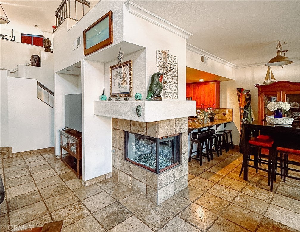 Discover refined coastal living in the highly sought-after Rancho San Clemente community. Designed to impress, this residence features soaring ceilings, oversized windows, and an abundance of natural light that creates a bright, open atmosphere throughout. Elegant travertine flooring spans the main level, blending sophistication with durability. The welcoming living area is highlighted by a striking fireplace and distinctive architectural touches that add warmth and charm. An additional fireplace enhances the home’s inviting ambiance. The beautifully appointed kitchen offers granite countertops, custom cabinetry, and a spacious breakfast bar that flows effortlessly into the dining and living spaces, ideal for both entertaining and everyday comfort. Two sliding glass doors create a seamless indoor-outdoor connection, leading directly to the backyard and inviting in the coastal breeze. Step outside to your private outdoor retreat, perfect for relaxing or hosting gatherings. Upstairs, rich wood flooring adds warmth and character. The generous primary suite provides a peaceful escape, complete with a spa-inspired bath featuring a soaking tub and elegant stone finishes. Residents of Vilamoura enjoy access to a private pool and spa, offering resort-style amenities just moments from home. Nearby, Rancho San Clemente Sports Park features beach volleyball and basketball courts, playgrounds, picnic areas, and rolling grassy hills. Hiking trails, fitness centers, and multiple shopping destinations are all conveniently close, enhancing the ease of everyday living. Offering comfort, style, and an exceptional coastal setting, this home captures the very best of Southern California living.