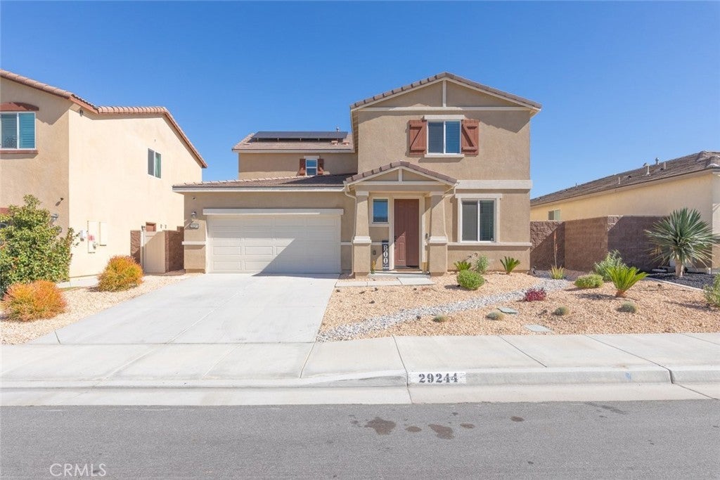 Welcome to 29244 Date Palm , a stylish and inviting home in the highly-desired Summerly community of Lake Elsinore! This beautifully upgraded 4-bed, 3-bath residence offers 2,314 sq ft of comfortable living, featuring a convenient downstairs bedroom perfect for guests, in-laws, or a home office. Step inside to find an open and airy floorplan highlighted by upgraded vinyl wood flooring, modern kitchen cabinetry, granite countertops, and stainless steel appliances, a kitchen designed for both daily living and entertaining. The backyard is where this home truly shines! Enjoy a fully customized outdoor space complete with pavers, turf for low-maintenance living, and your very own tranquil waterfall feature—ideal for gatherings, BBQs, or relaxing evenings at home. The front yard offers easy-care desert landscaping, keeping upkeep simple and curb appeal high. Energy efficiency is a plus with leased solar, helping keep utility costs down year-round. Located in Summerly, residents enjoy access to community pools, parks,  sports court, and more—just minutes from schools, shopping, dining, and the lake. Turn-key, upgraded, and ready to welcome you home