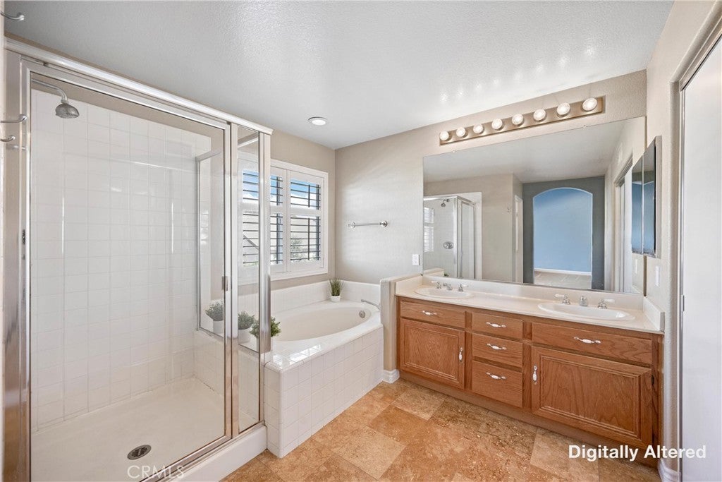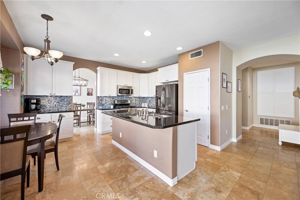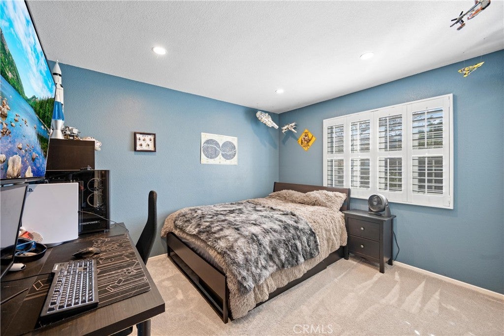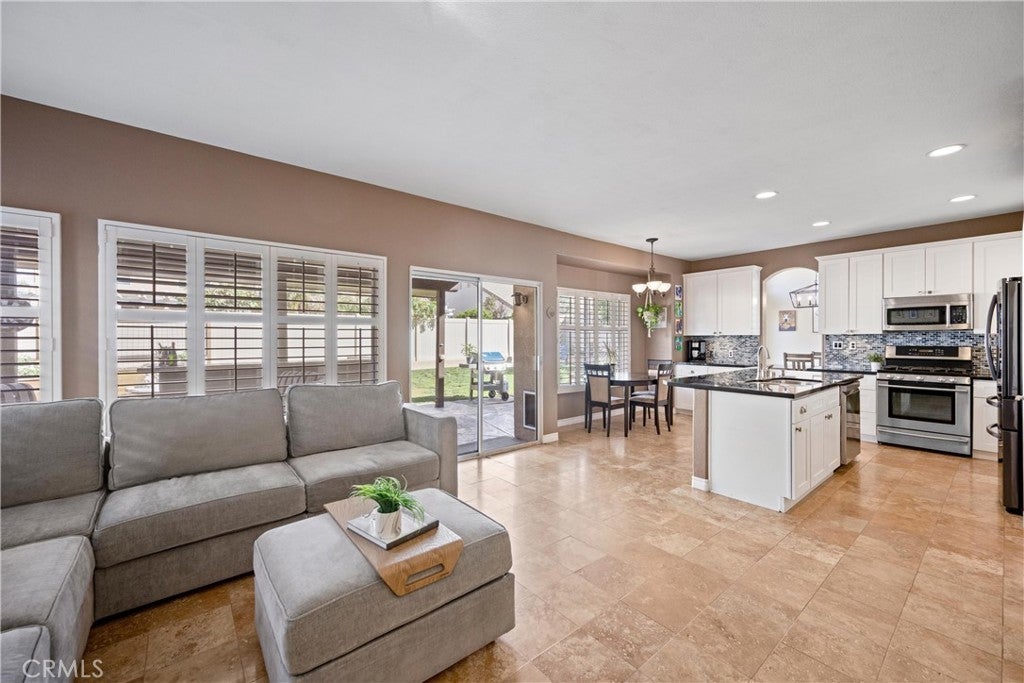 5 BEDS + LOFT | DOWNSTAIRS BED + BATH | 3-CAR GARAGE | RV / BOAT PARKING | FULLY PAID SOLAR | NO HOA | LOW TAXES | This beautiful home in the heart of Corona offers space, style, and exceptional upgrades throughout. Step through the impressive double-door entry and you’re immediately greeted by abundant natural light, soaring cathedral ceilings, and upgraded tile flooring that creates a warm yet elegant first impression. The Living Room flows seamlessly into the formal Dining Room, making entertaining effortless. The heart of the home is truly a chef’s dream Kitchen, showcasing a walk-in pantry, oversized island with breakfast bar seating, white shaker cabinetry, granite countertops, custom tile backsplash, and a charming coffee bar. Adjacent to the Kitchen, the inviting Family Room features a gas fireplace and an over-sized sliding door to the backyard, blending indoor and outdoor living with ease. The well-sized Primary Suite is washed with natural light and has a spa-inspired Ensuite Bathroom complete with a walk-in shower, deep soaking tub, and dual sinks. Bedrooms #2 - #4 are generously sized and ideal for family or guests. Bathroom #2 upstairs includes dual sinks, a shower/tub combination, and a privacy door. An oversized Loft provides the perfect space for a media room, playroom, or home office. Downstairs, a Bedroom and full Bathroom with tub and walk-in shower offer excellent multi-generational living potential. Convenience continues with an oversized Laundry Room featuring a folding station and ample storage. The Backyard is an entertainer’s dream with a large patio, over-sized patio cover with overhead heaters and fan, bar-top seating with meal prep area (perfect for BBQs) - all made for entertaining! The backyard also includes raised planters, fruit trees, vinyl fencing, and scenic mountain views. The 3-car garage boasts epoxy flooring, and you'll find four additional driveway spaces and tons of parking space for boat or RV! UPGRADES: Exterior paint (2025), new AC and furnace (2021), and new upstairs carpet (2022). ENERGY EFFECIENCY: Fully paid solar system with two batteries, whole house fan, ceiling fans, plantation shutters, LED lighting and 220-volt power in the garage. LOCATION : Enjoy nearby parks, shopping, dining, and convenient access to the 91, 15 and 241 freeways. This exceptional Corona home truly has it all!