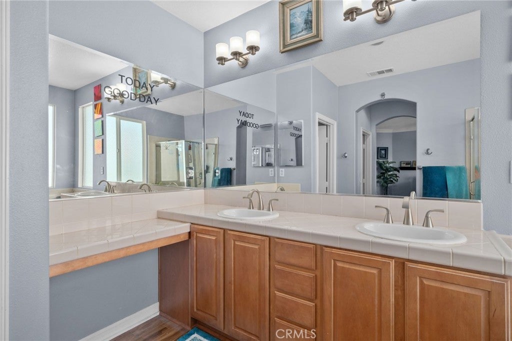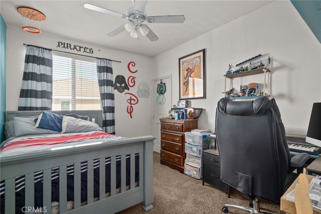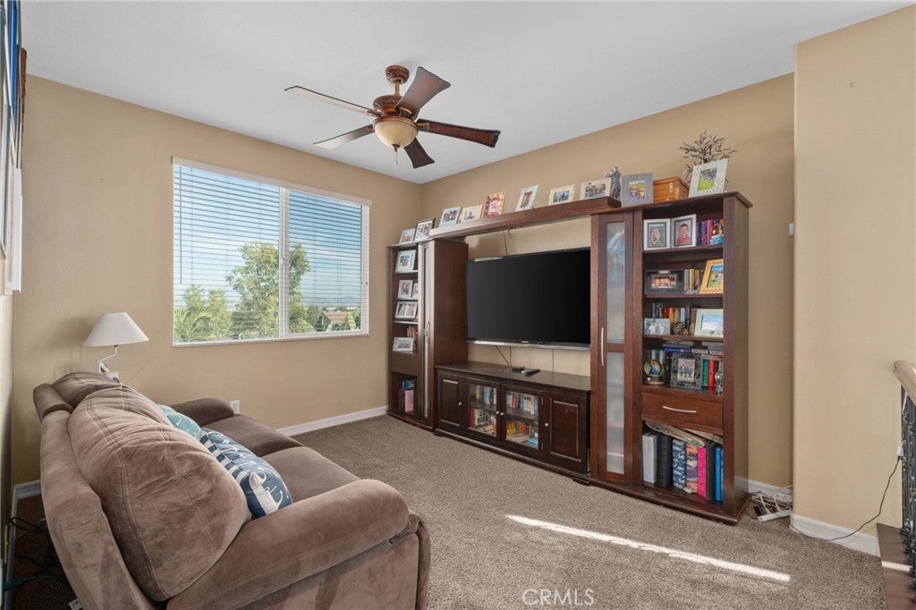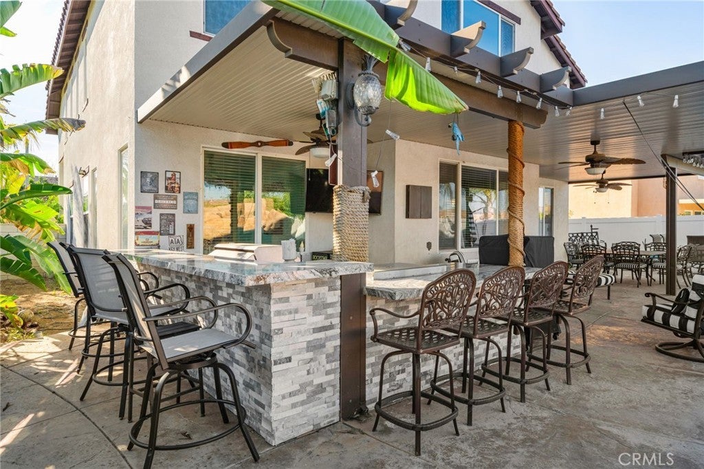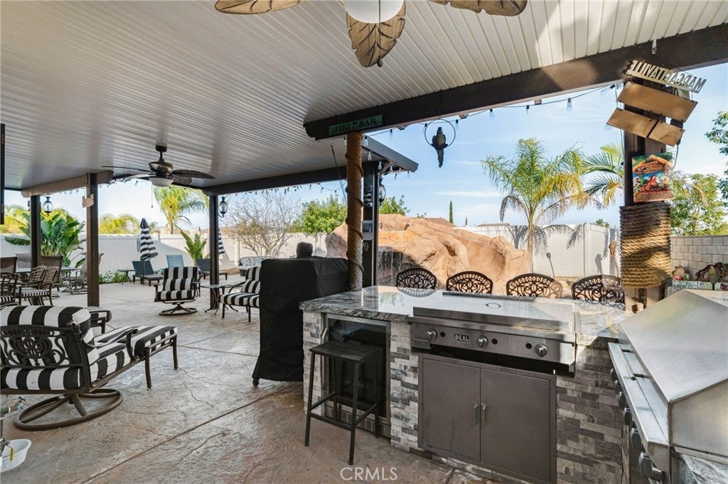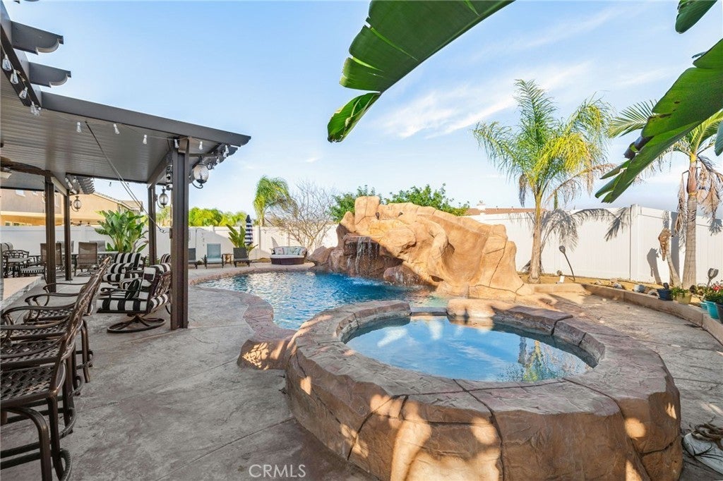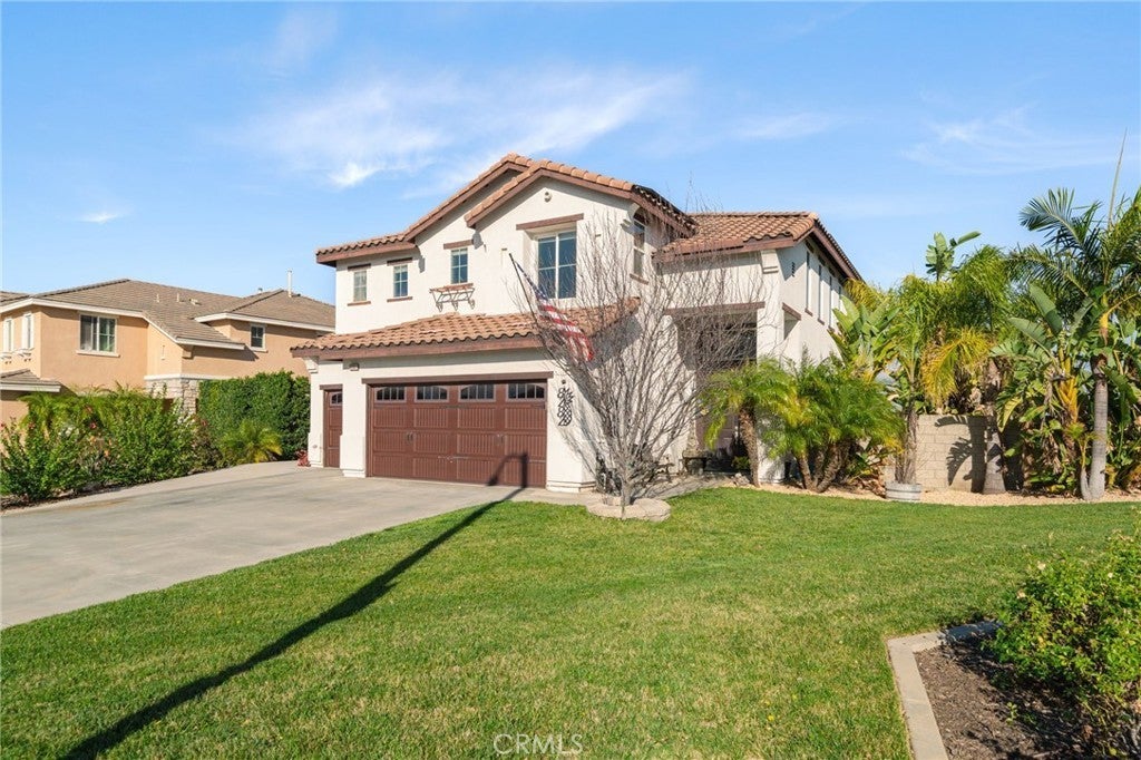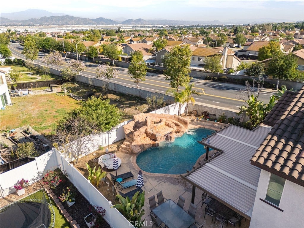 Welcome to PARADISE—inside and out! Located in the sought-after Orangecrest area, this Tropical Paradise offers a RESORT-LIKE backyard with POOL, SPA, SLIDE, WATERFALL, GROTTO and OUTDOOR KITCHEN that will have you feeling like you're on vacation anytime! Discover refined living in this stunning 4-bedroom, 3-bathroom home, perfectly situated on a corner lot with exceptional curb appeal. Step inside to an impressive foyer featuring sky-high ceilings and picturesque windows that bathe the home in natural light. The thoughtfully designed floor plan flows into a welcoming living room with a cozy fireplace and an inviting connection to the kitchen, creating a comfortable space for everyday living and entertaining. The kitchen is beautifully appointed with a large center island, granite countertops, ample cabinetry, and updated appliances. Nearby, the dining room is framed by expansive windows, providing the perfect setting for memorable dinners and gatherings. The laundry room offers built-in linen storage and generous counter space for folding and organization, with a convenient half bath adjacent for guests. A versatile upstairs loft provides endless possibilities as a home office, gym, nursery, or creative space. The primary suite offers privacy and comfort along with large windows showcasing the surrounding views, plus TWO Primary Closets. The spa-inspired ensuite bathroom features a soaking tub, walk-in shower, and dual vanity. Upstairs, a contemporary landing leads to three additional bedrooms and a full bathroom for family or guests. Step outside to your private backyard retreat, where a stunning pool and spa with an exciting waterslide take center stage. A covered patio offers shaded space for alfresco dining, while the built-in barbecue and seating areas make entertaining easy. The landscaped yard is perfect for gatherings, outdoor meals, or relaxing in the sunshine. The three-car garage offers New Garage Doors and ample room for parking or storage, while gated additional parking provides convenience for toys. For max efficiency, enjoy OWNED SOLAR and NEW AC UNITS! Ideally located near Tomas Rivera Elementary and Amelia Earhart Middle School, this exceptional home combines comfort, style, and convenience. Don’t miss your opportunity to make this beautiful property your own—just in time to splash into summer.