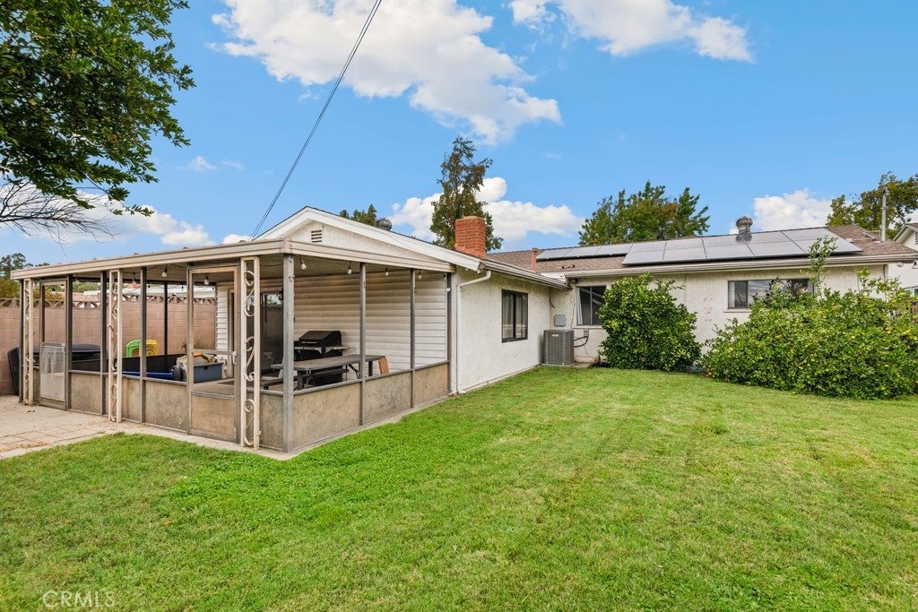 Move-in-ready single-story mid-century home nestled on a quiet cul-de-sac in a desirable Ontario neighborhood. Offering 4 bedrooms, 2 bathrooms, and 1,724 square feet of living space on a flat, private 7,540-square-foot lot, this property combines comfort, style, and functionality. Fantastic curb appeal welcomes you, while leased solar panels and a newer A/C system add energy efficiency and peace of mind. Inside, the spacious floor plan features recessed lighting, wood and tile flooring, and a warm brick fireplace anchoring the living room, which flows seamlessly into a versatile bonus/family room - ideal for gatherings or flexible living. The updated kitchen is thoughtfully designed with quartz countertops, a subway tile backsplash, stainless steel appliances (including a brand-new stove and dishwasher), an apron-front sink, and a cozy breakfast nook. The refrigerator and microwave are included. All four bedrooms are generously sized. The primary suite offers a private bathroom with a walk-in shower, while the three secondary bedrooms share a full hall bath. Enjoy year-round relaxation in the large enclosed patio, or step outside to a private backyard featuring a lush green lawn and block wall fencing - perfect for entertaining, play, or quiet evenings at home. Additional highlights include an attached two-car garage with laundry hookups and an included washer and dryer. With no HOA and a convenient location near schools, shopping, and dining, this home is ready for its next chapter and offers the perfect blend of comfort and convenience. Schedule your private tour today.