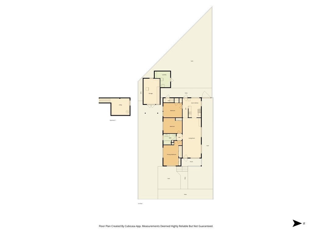 • Interior FeaturesEat-in Kitchen, High Ceilings, All Bedrooms Down, Main Level Primary, Galley Kitchen